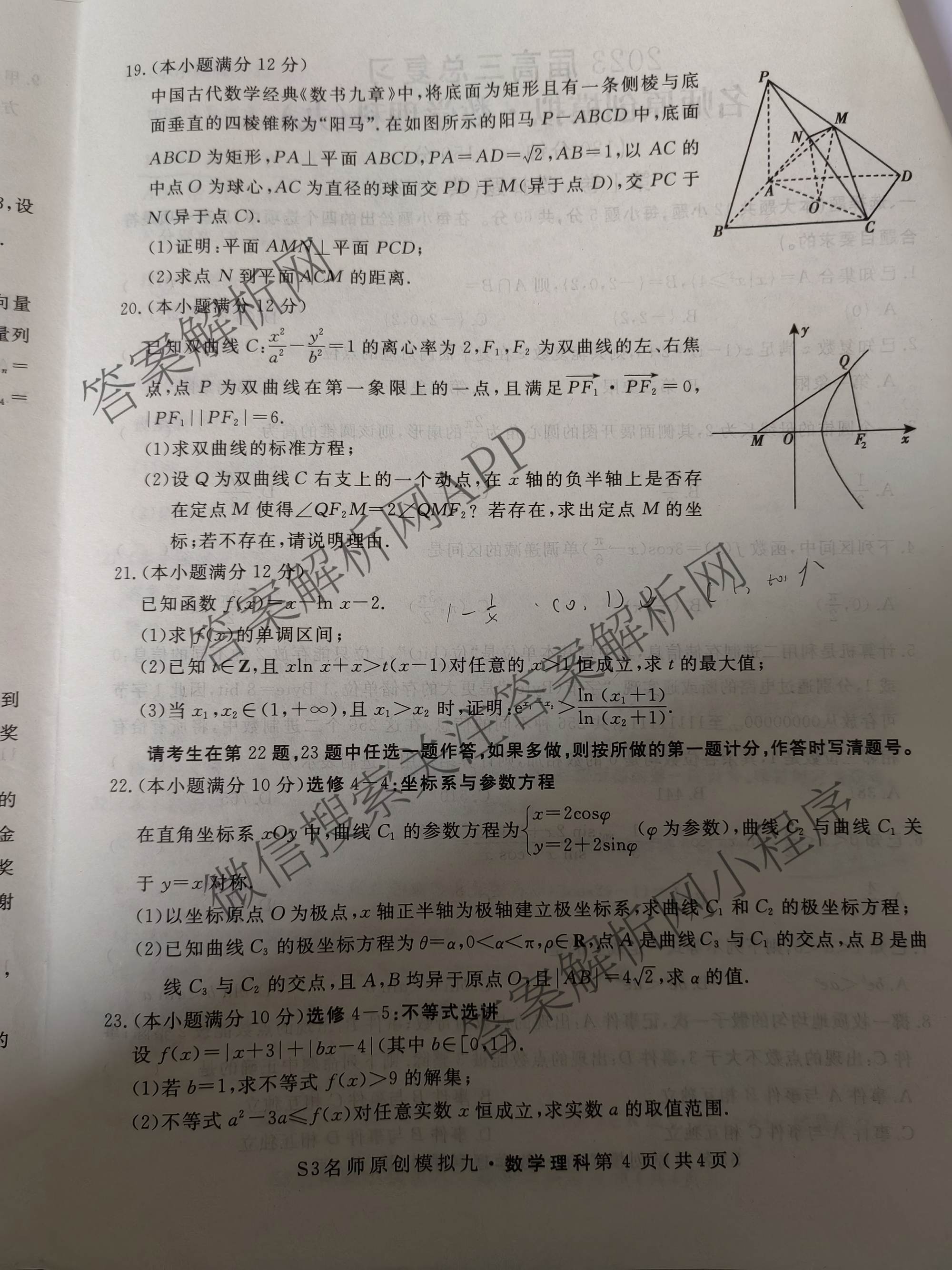 2023届高三总复习·S3名师原创模拟理数(九)9试题,目前分科卷答案网已经汇总了2023届高三总复习·S3名师原创模拟理数(九)9试题的各科答案和试卷,获取更多高三总复习·名师原创模拟答案解析,请在关注本站。
