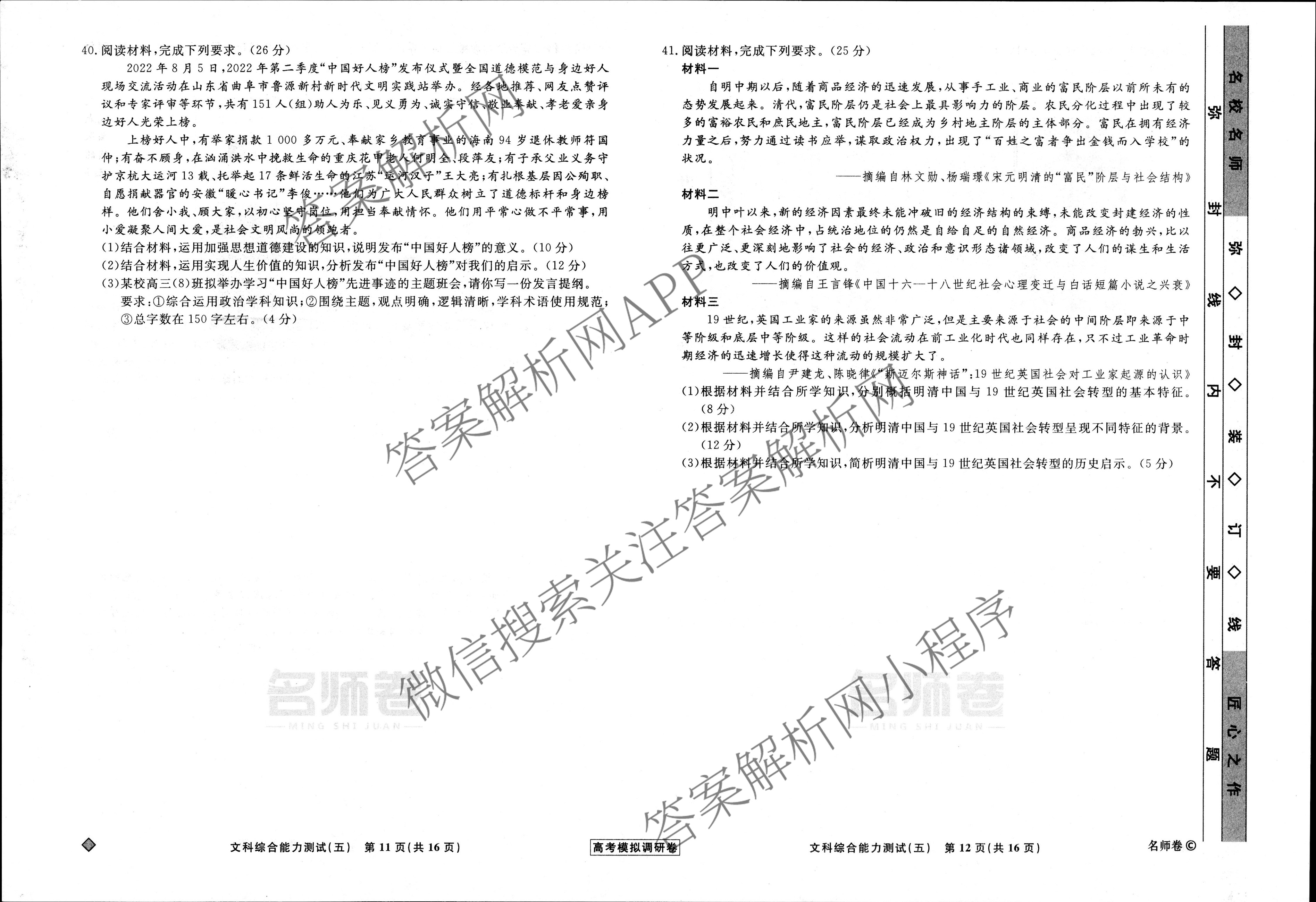 - (衡水名师卷)·2022~2023高考模拟调研卷 文综(※)(五)5答案