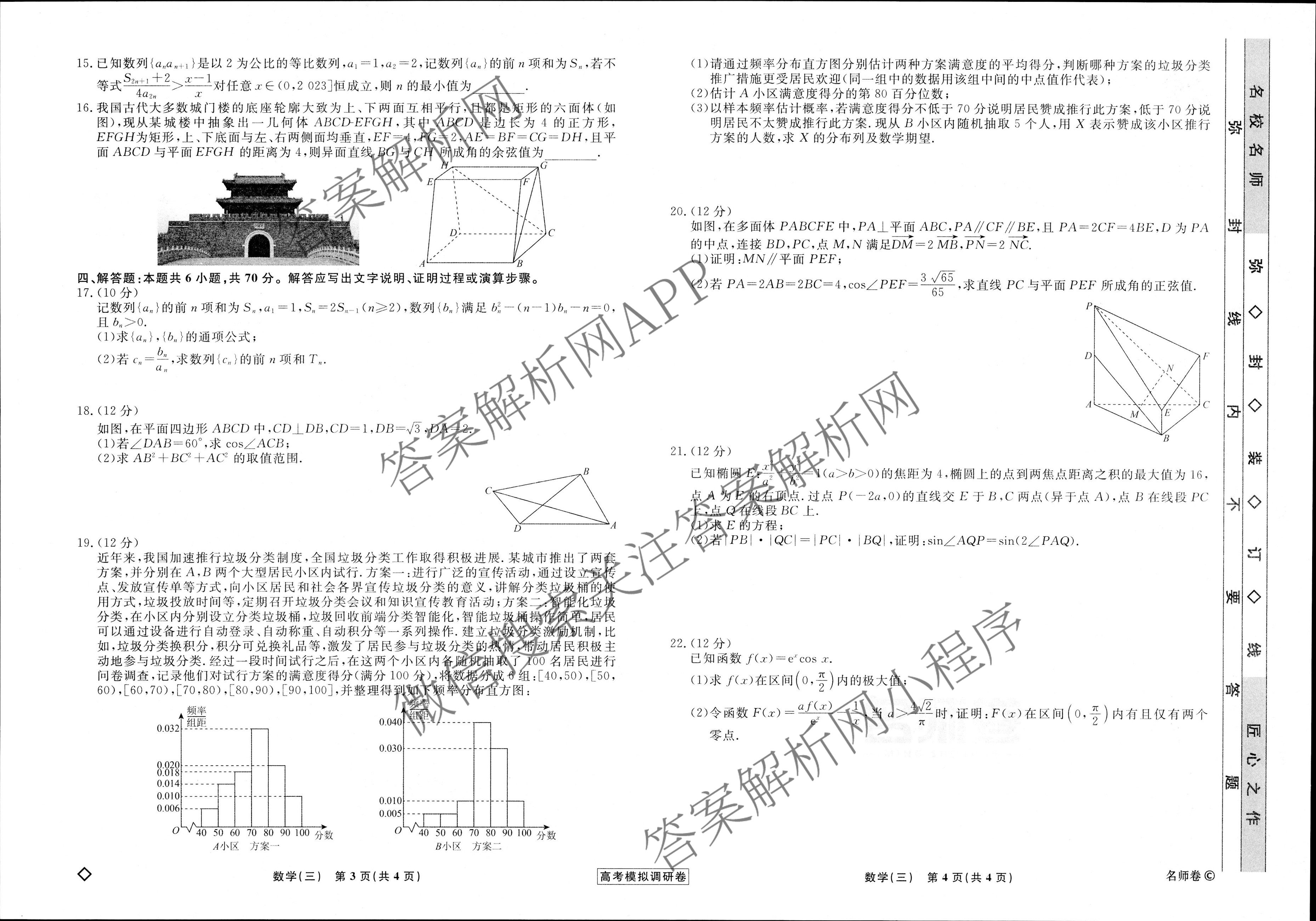- (衡水名师卷)2022~2023高考模拟调研卷 文数(实心◇)(三)3答案