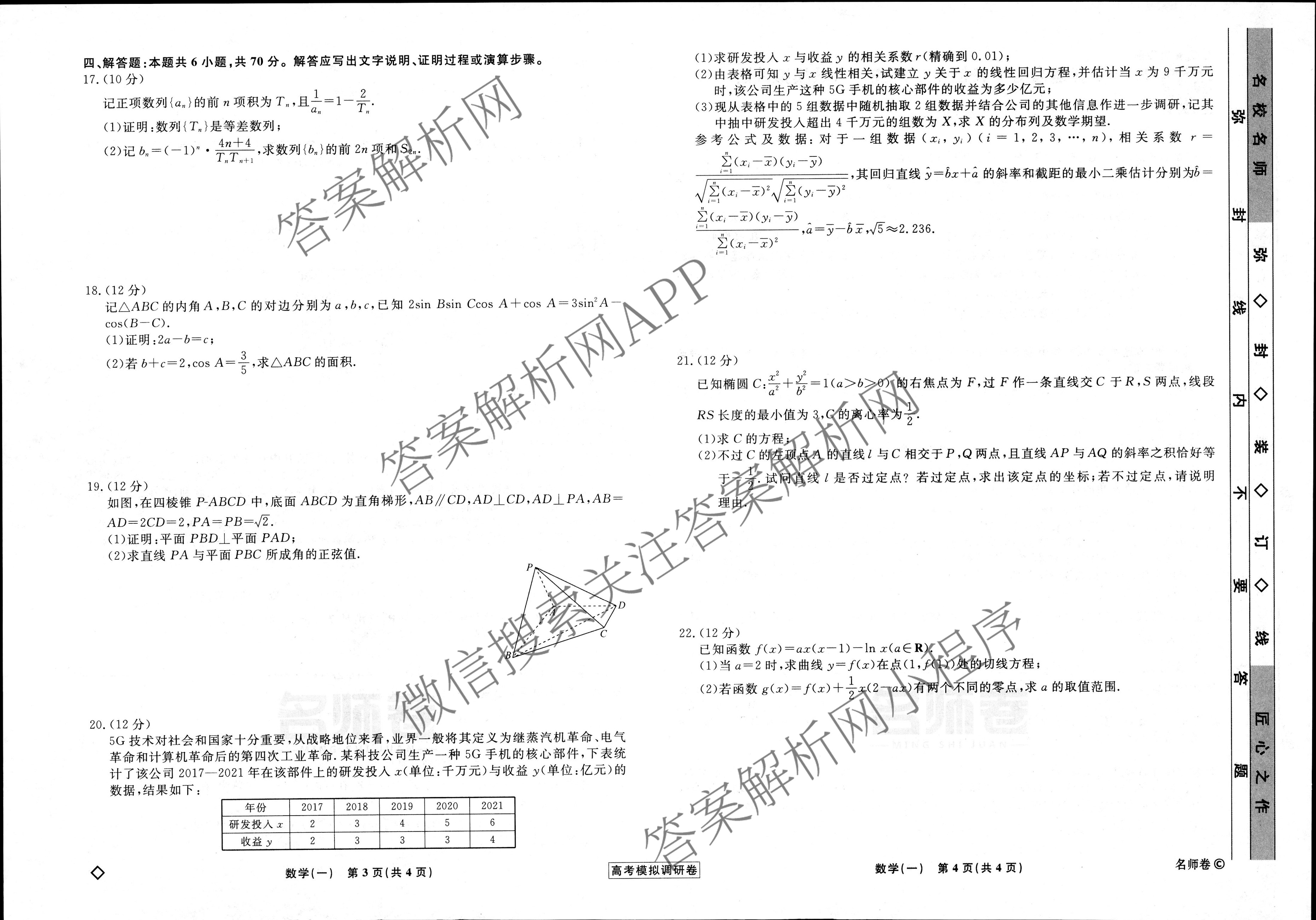 - 2022-2023[衡水名师卷]高考模拟调研卷 理数(※)(一)1答案