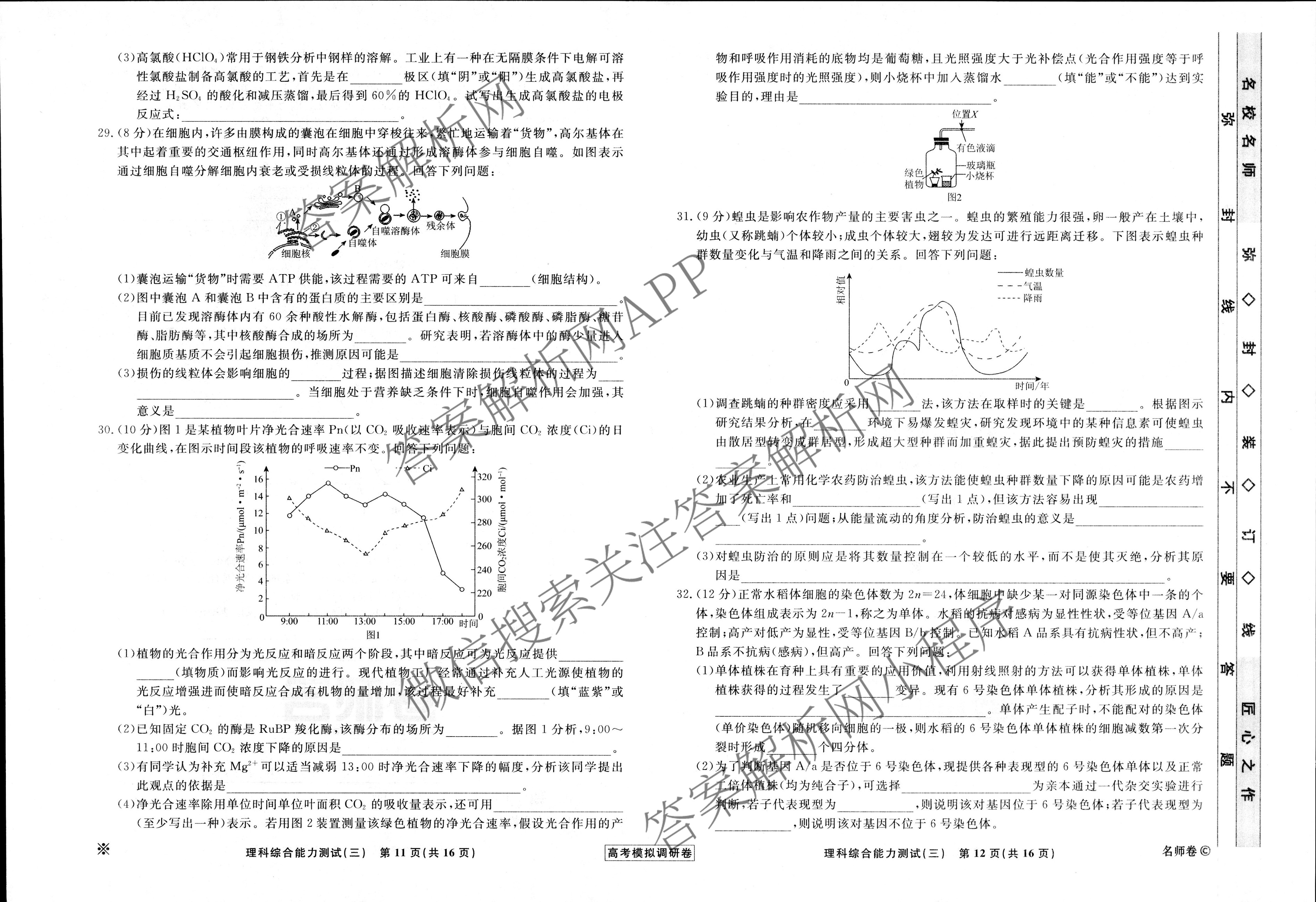衡水名师卷·2022-2023高考模拟调研卷 理综(※)(三)3试题,目前分科卷答案网已经汇总了衡水名师卷·2022-2023高考模拟调研卷 理综(※)(三)3试题的各科答案和试卷,获取更多衡水名师卷答案解析,请在关注本站。