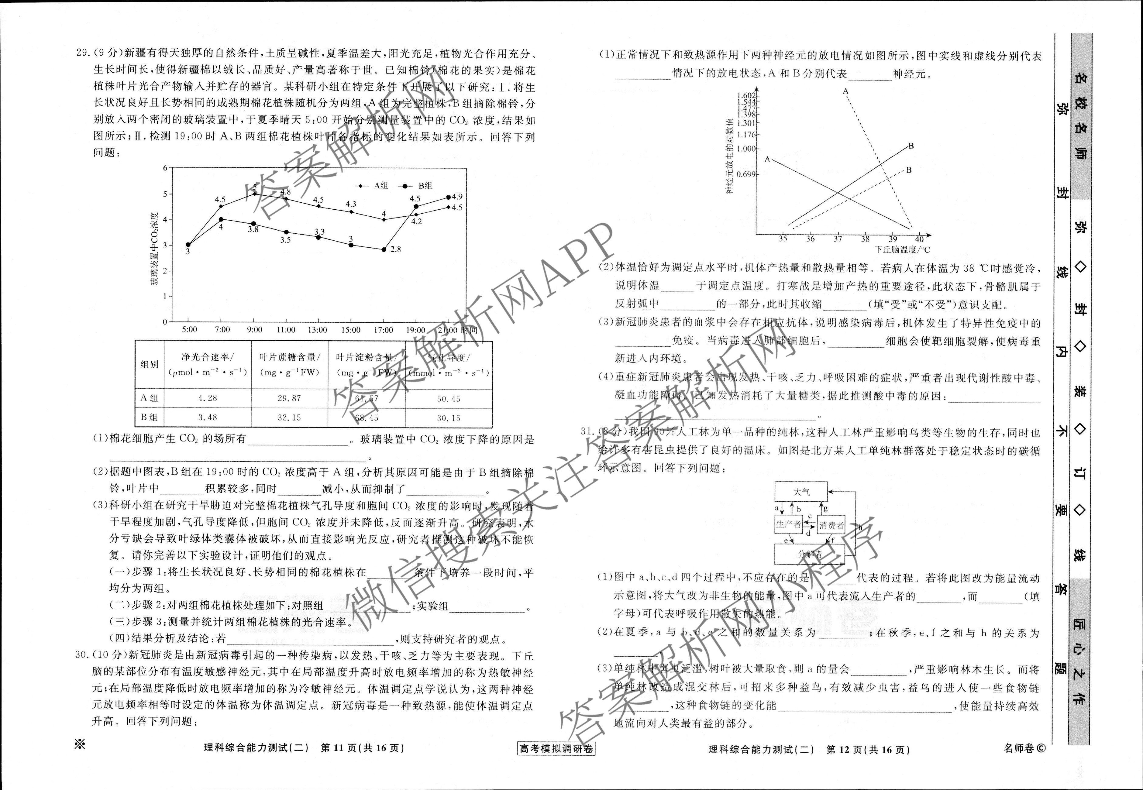 衡水名师卷·2022-2023高考模拟调研卷 理综(※)(二)2试题,目前分科卷答案网已经汇总了衡水名师卷·2022-2023高考模拟调研卷 理综(※)(二)2试题的各科答案和试卷,获取更多衡水名师卷答案解析,请在关注本站。