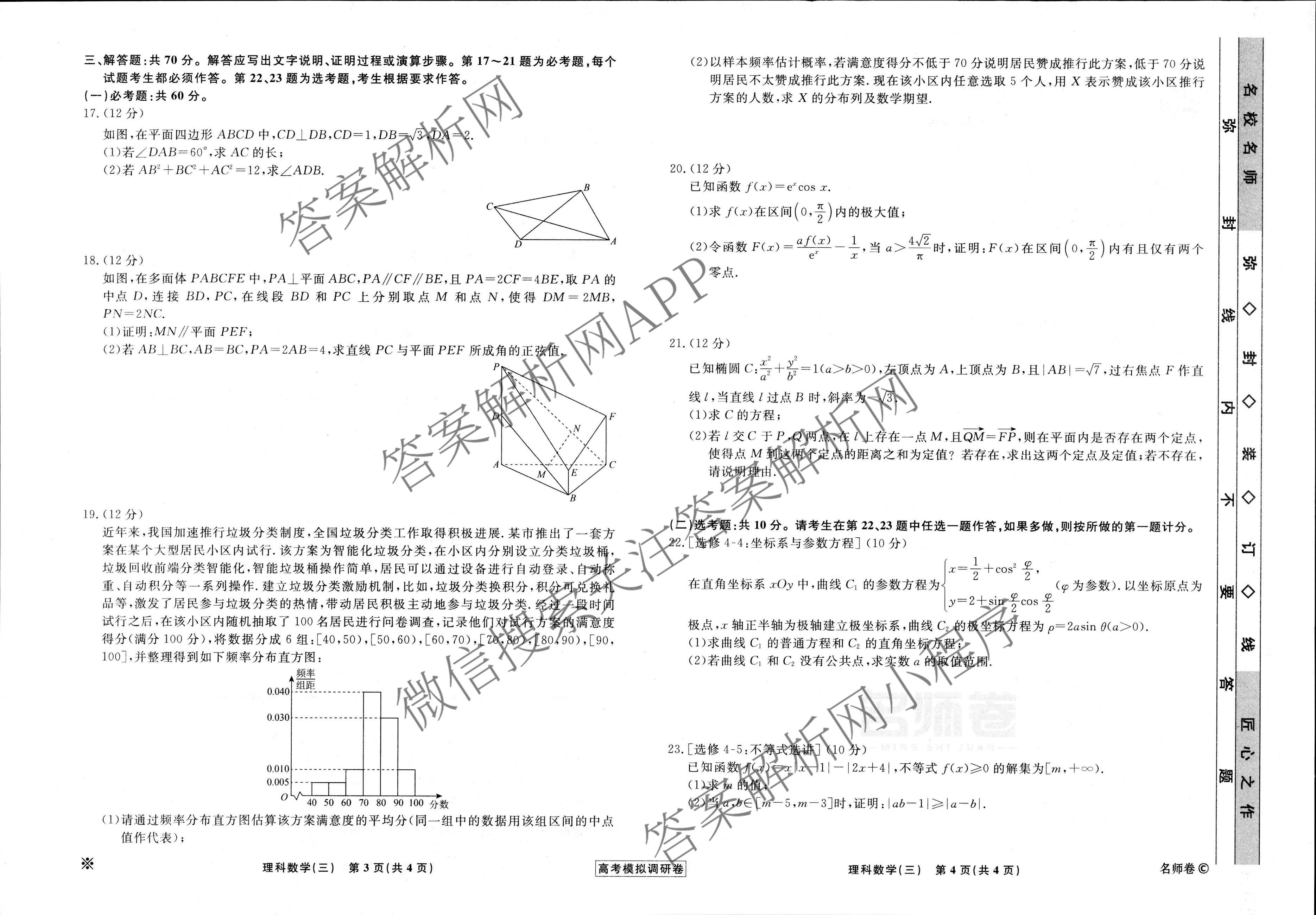 - 2022~2023衡水名师卷·高考模拟调研卷 理数(空心◇)(三)3答案