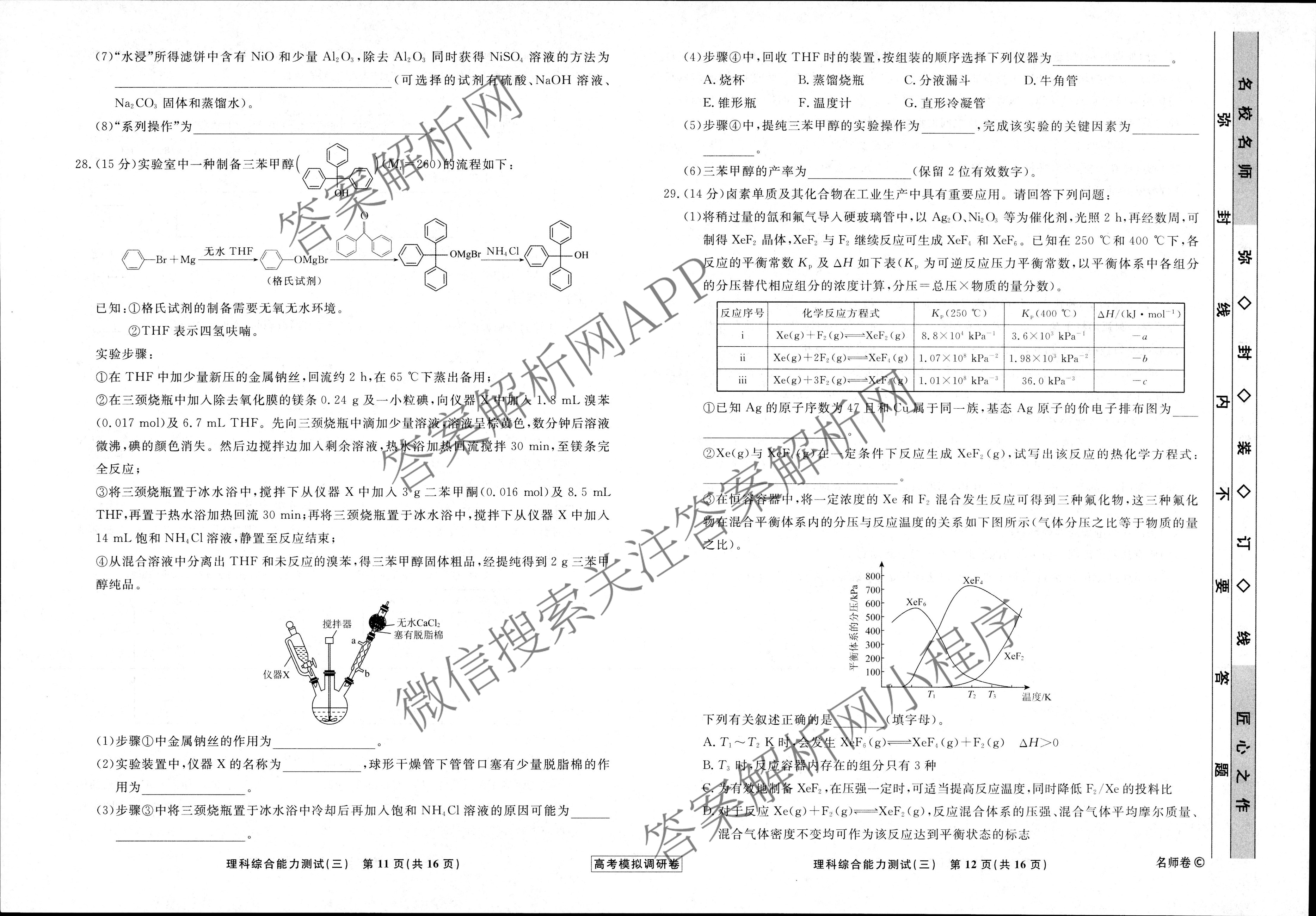 - [高三][衡水名师卷]·湖南省2023年高考模拟调研卷 化学(三)3答案