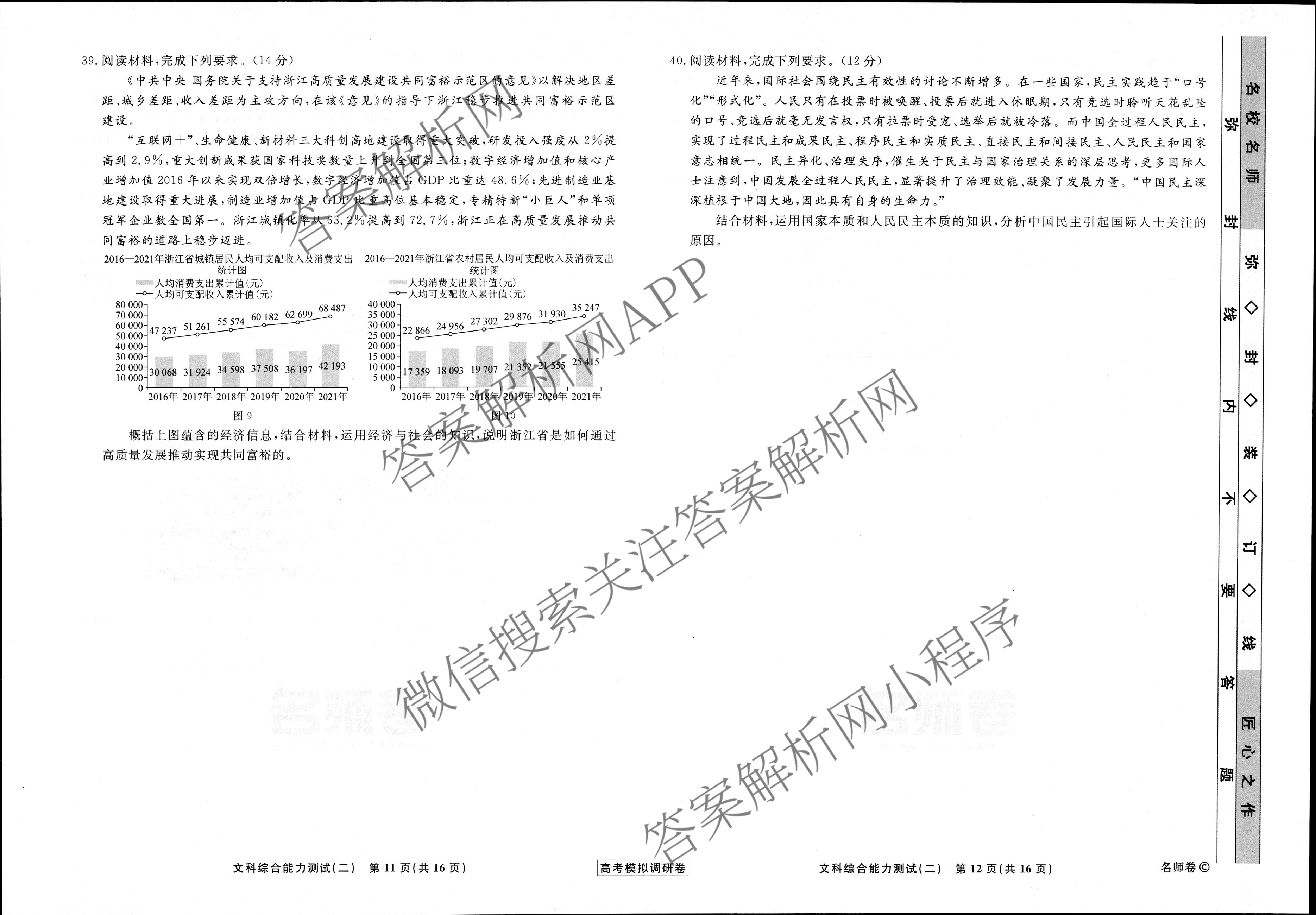 - 2022-2023(高三)衡水名师卷高考模拟调研卷 文综(实心◇)(二)2答案