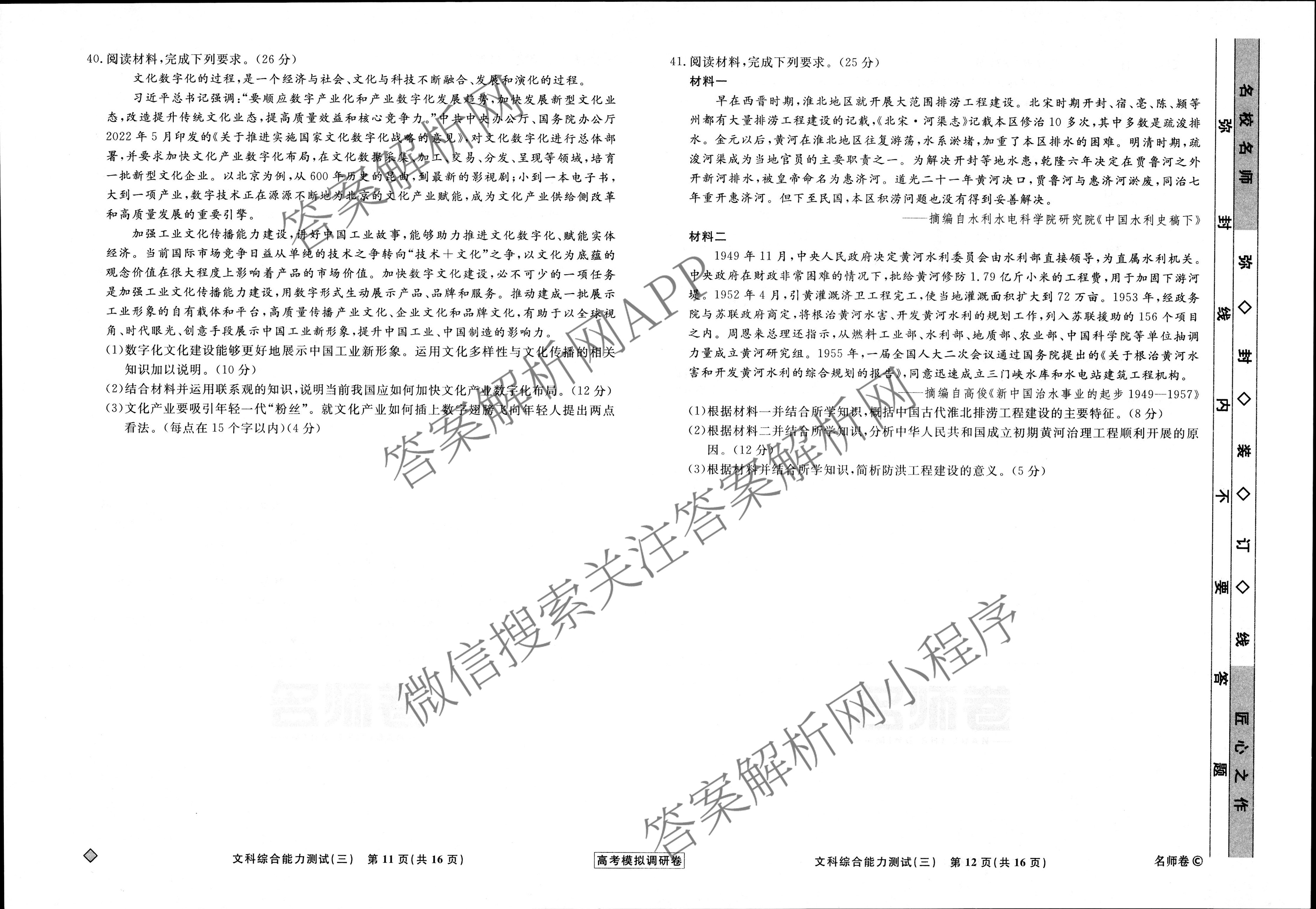 - (高三)[衡水名师卷]·2022-2023高考模拟调研卷 文综(不带◇)(三)3答案