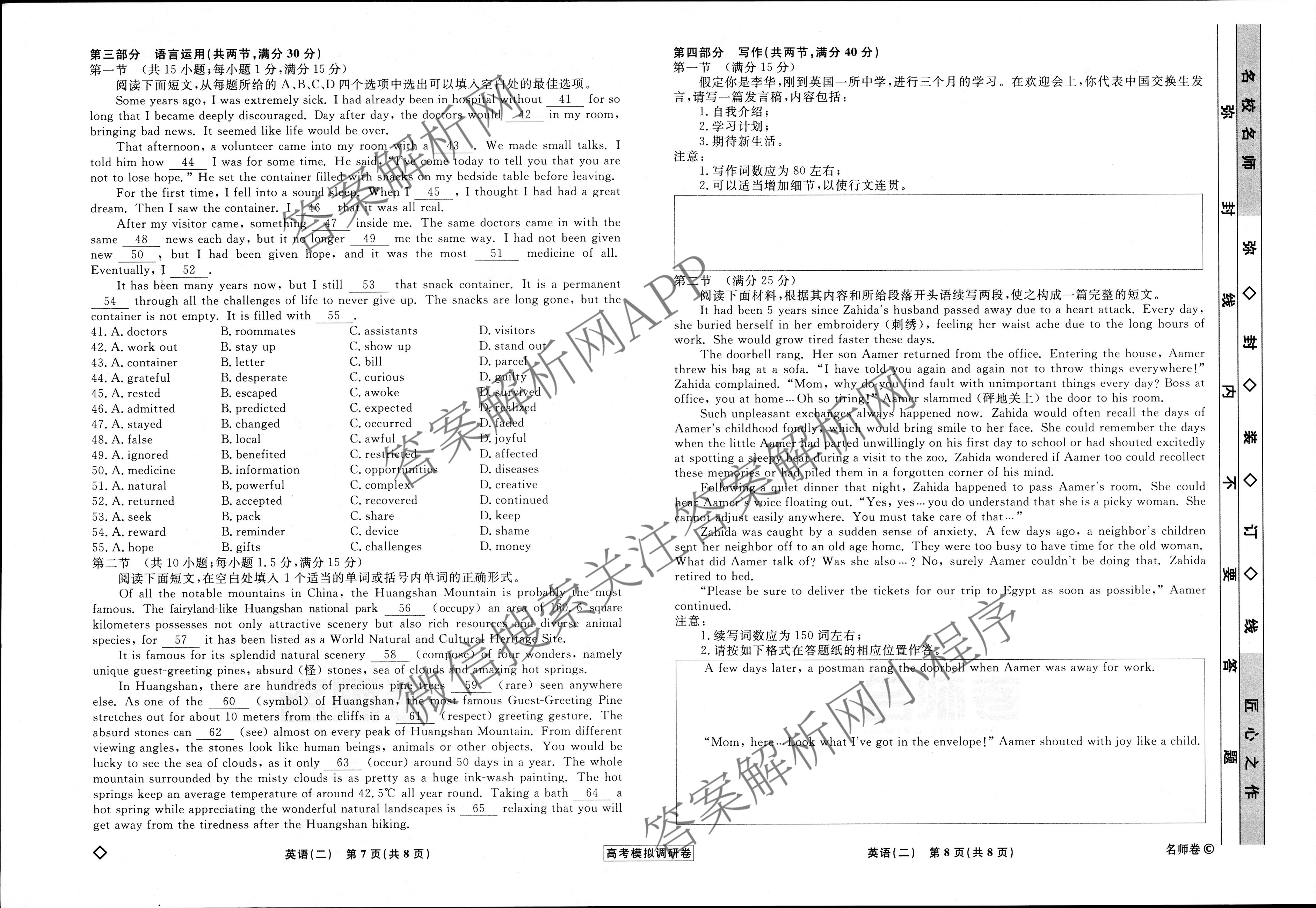 - 2022~2023[高三]衡水名师卷高考模拟调研卷 英语(※)(二)2试题