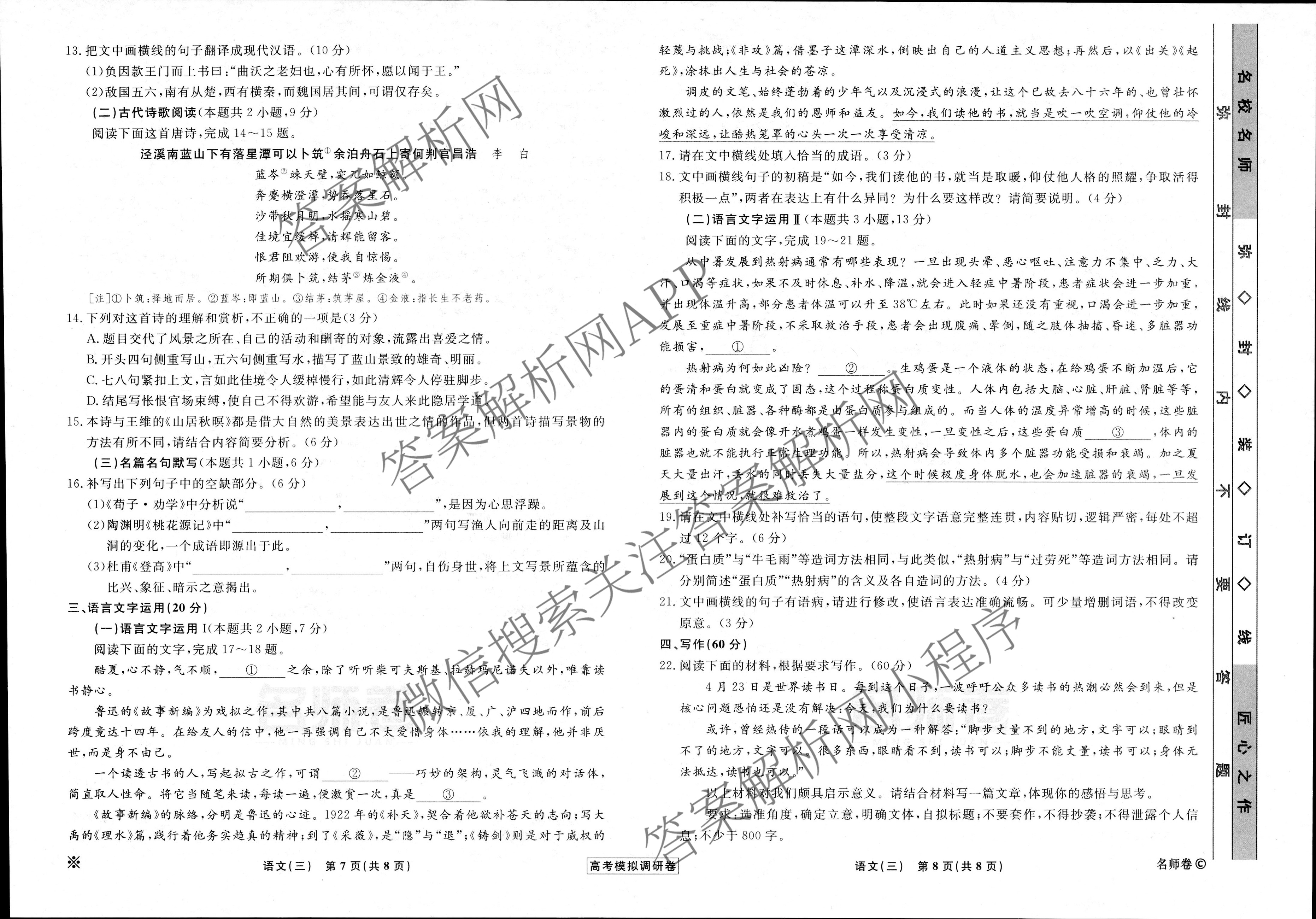 2022~2023高三[衡水名师卷]·高考模拟调研卷 语文(※)(三)3试题