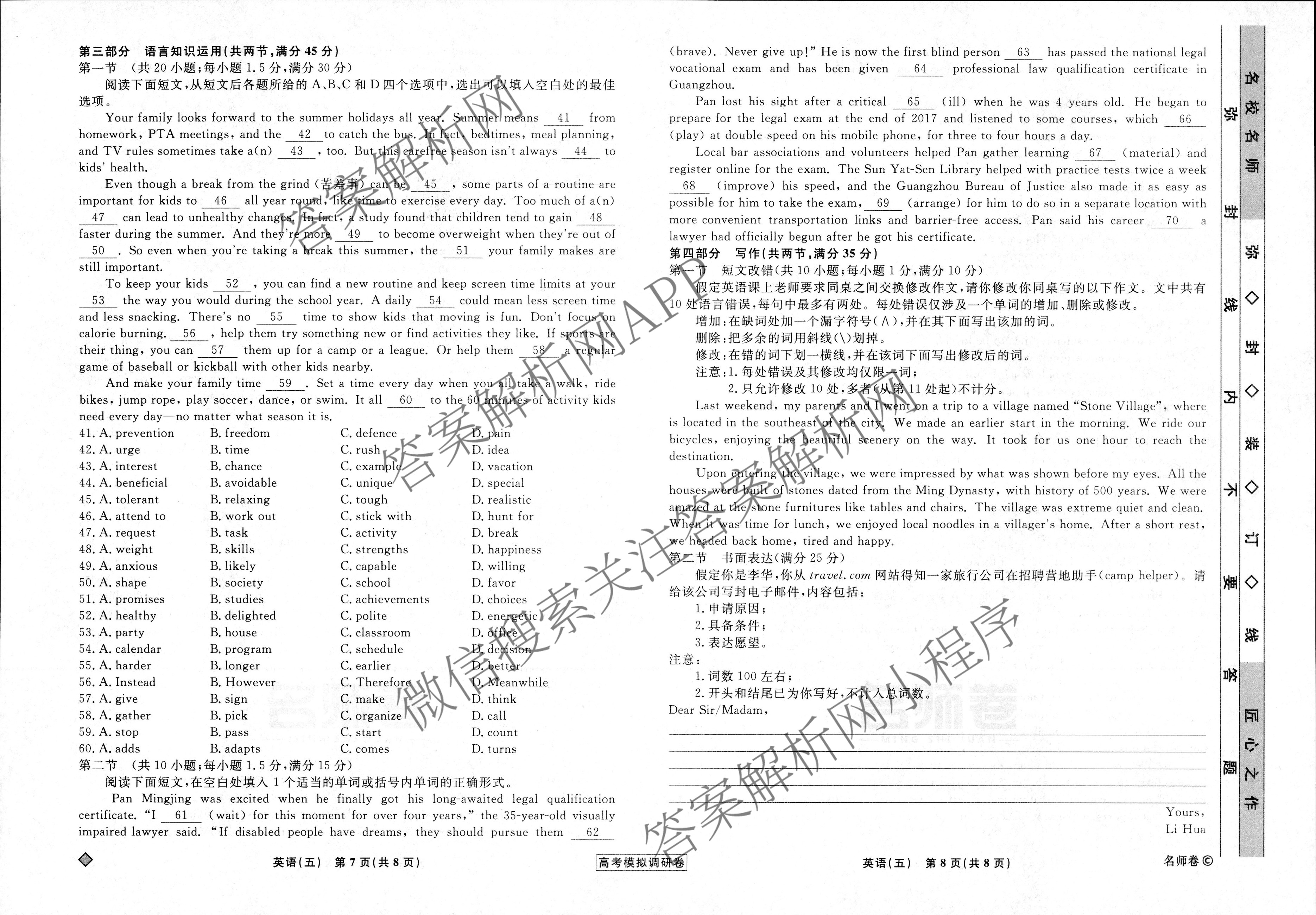 2022-2023高三(衡水名师卷)高考模拟调研卷 英语(实心◇)(五)5试题
