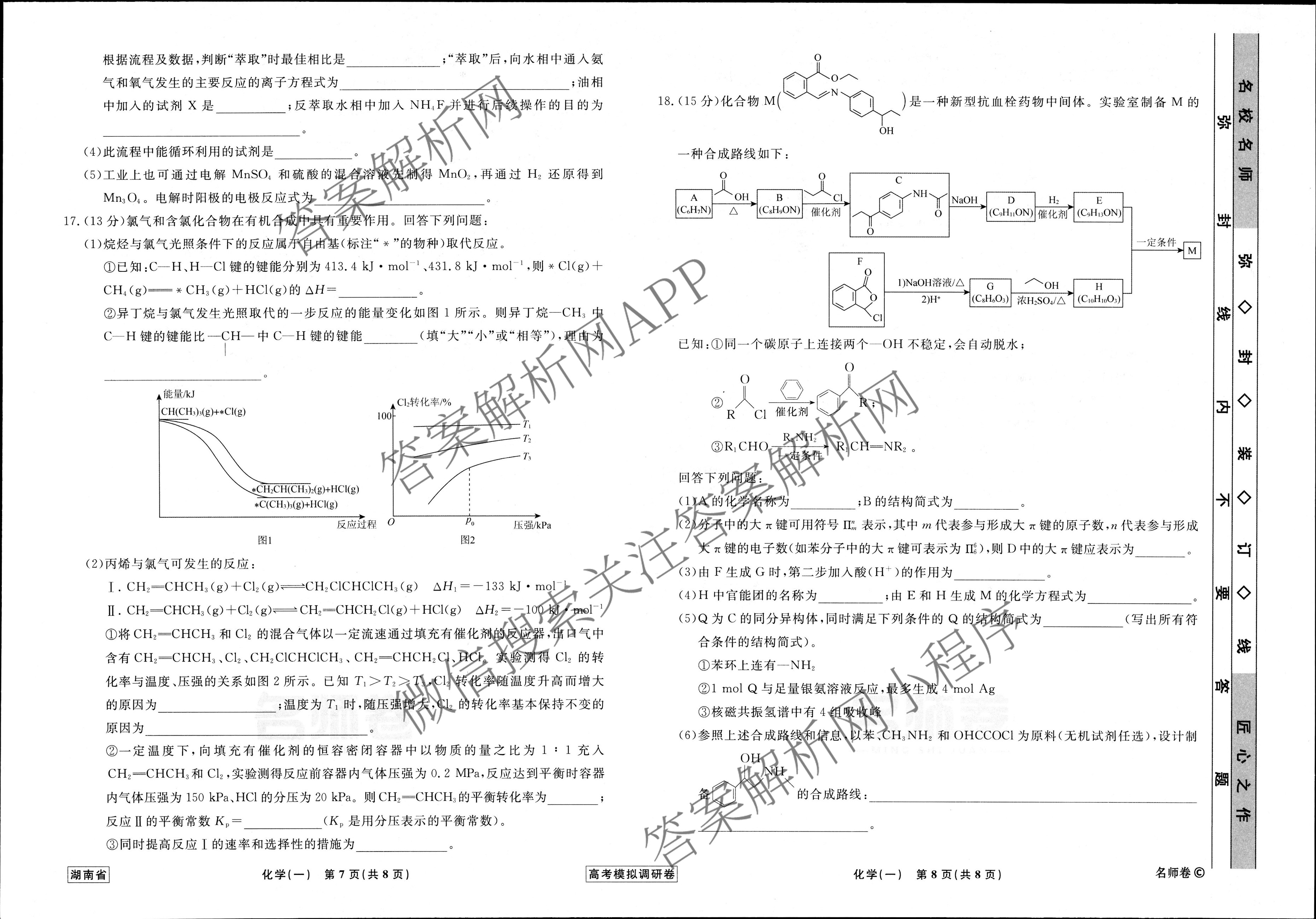 衡水名师卷·湖南省2023年高考模拟调研卷 化学(一)1试题,目前分科卷答案网已经汇总了衡水名师卷·湖南省2023年高考模拟调研卷 化学(一)1试题的各科答案和试卷,获取更多衡水名师卷答案解析,请在关注本站。