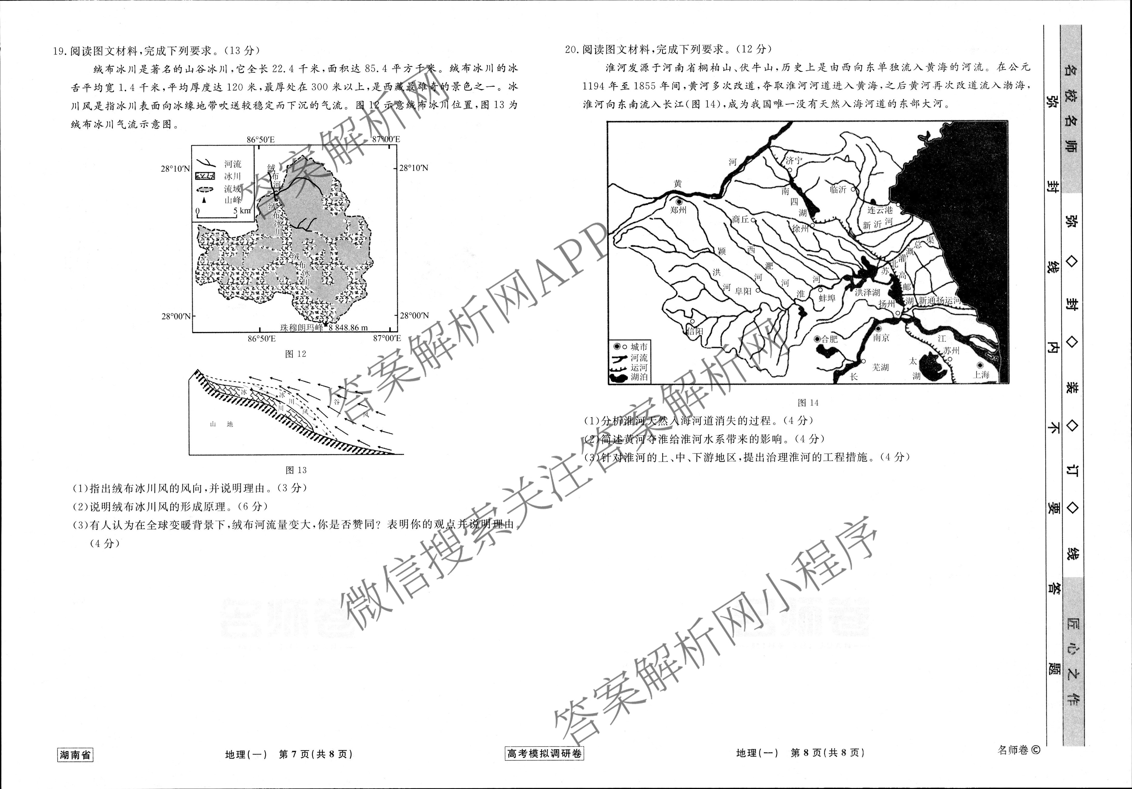 - [衡水名师卷]·湖南省2023年高考模拟调研卷 地理(一)1答案