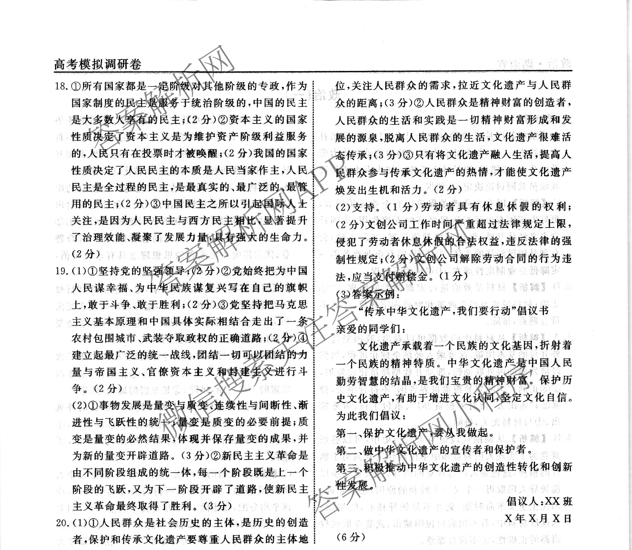 - [衡水名师卷]湖南省2023年高考模拟调研卷 政治(一)1答案