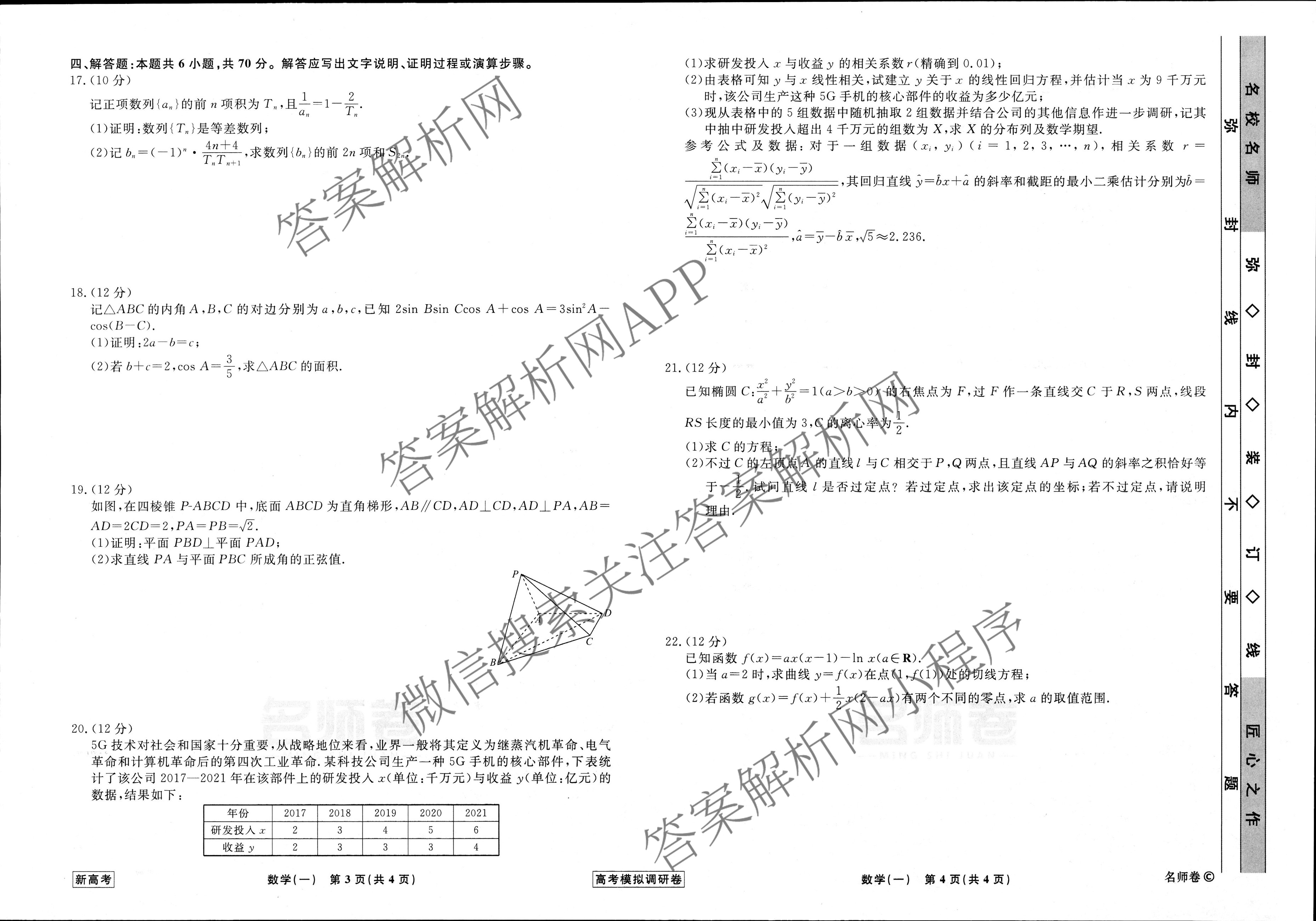 - (衡水名师卷)2022~2023高考模拟调研卷 数学(新高考)(一)1答案