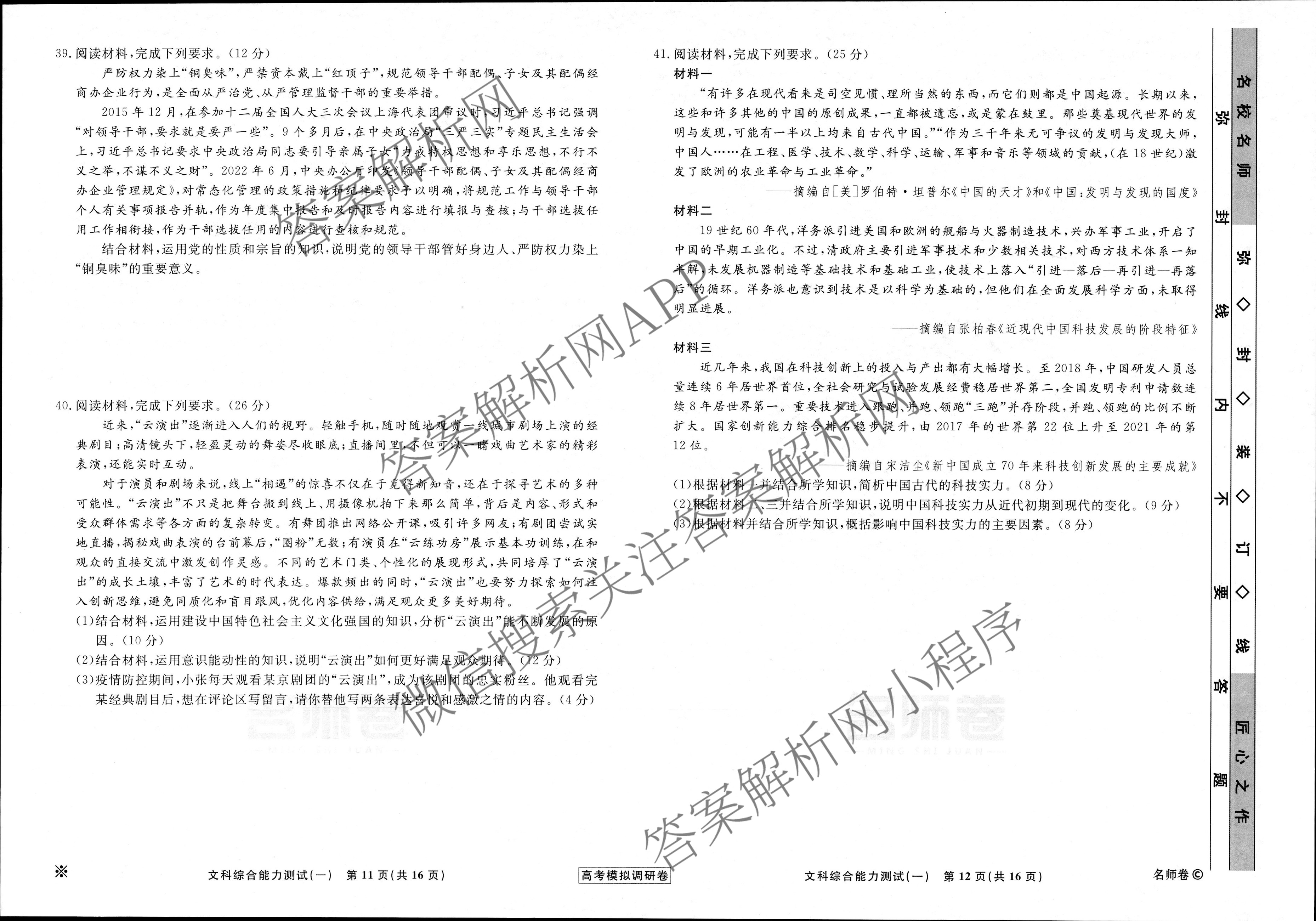 - (高三)[衡水名师卷]2022~2023高考模拟调研卷 文综(※)(一)1答案