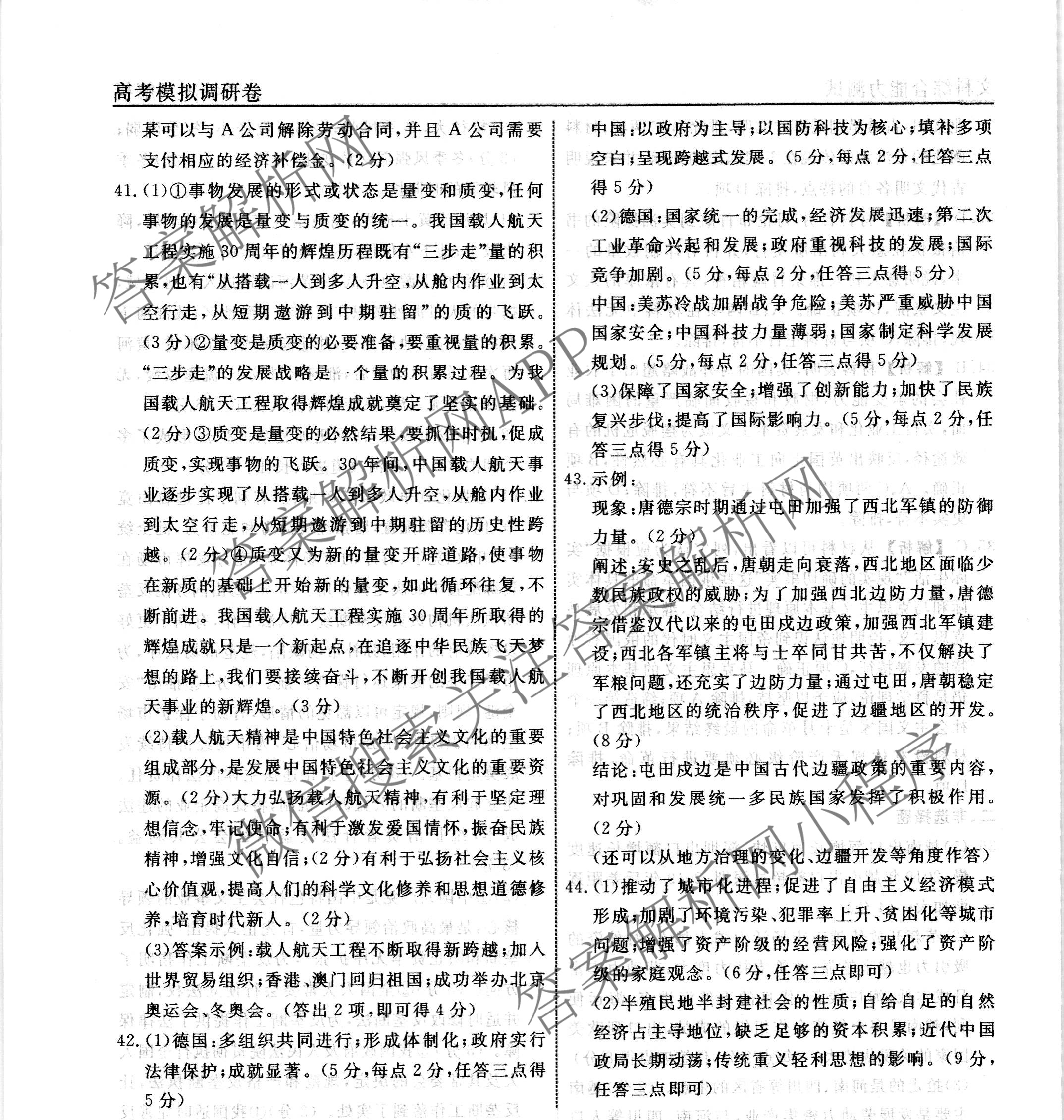- 2022~2023[高三]衡水名师卷高考模拟调研卷 文综(不带◇)(一)1试题