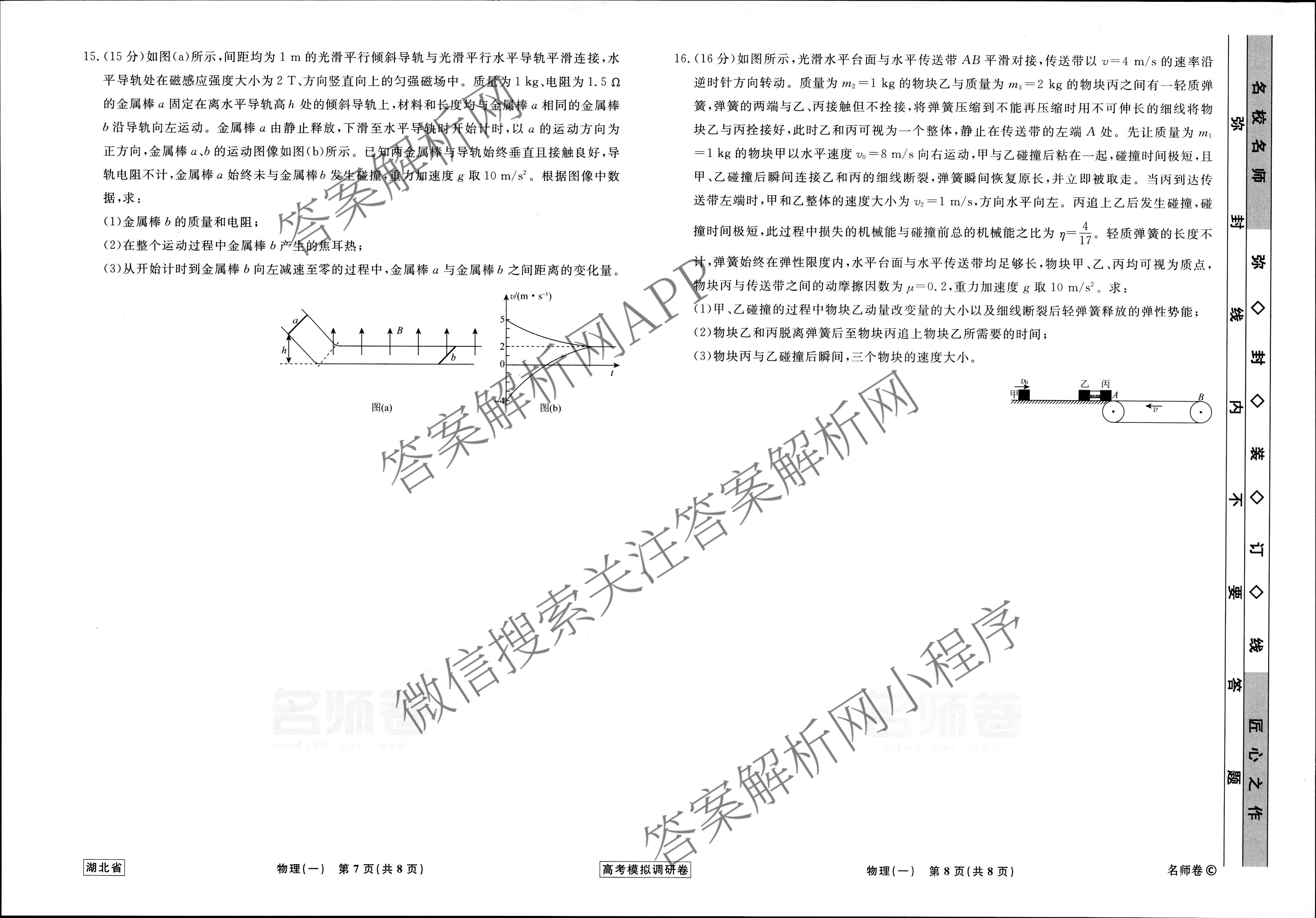 - [衡水名师卷]·湖北省2023年高考模拟调研卷 物理(一)1答案