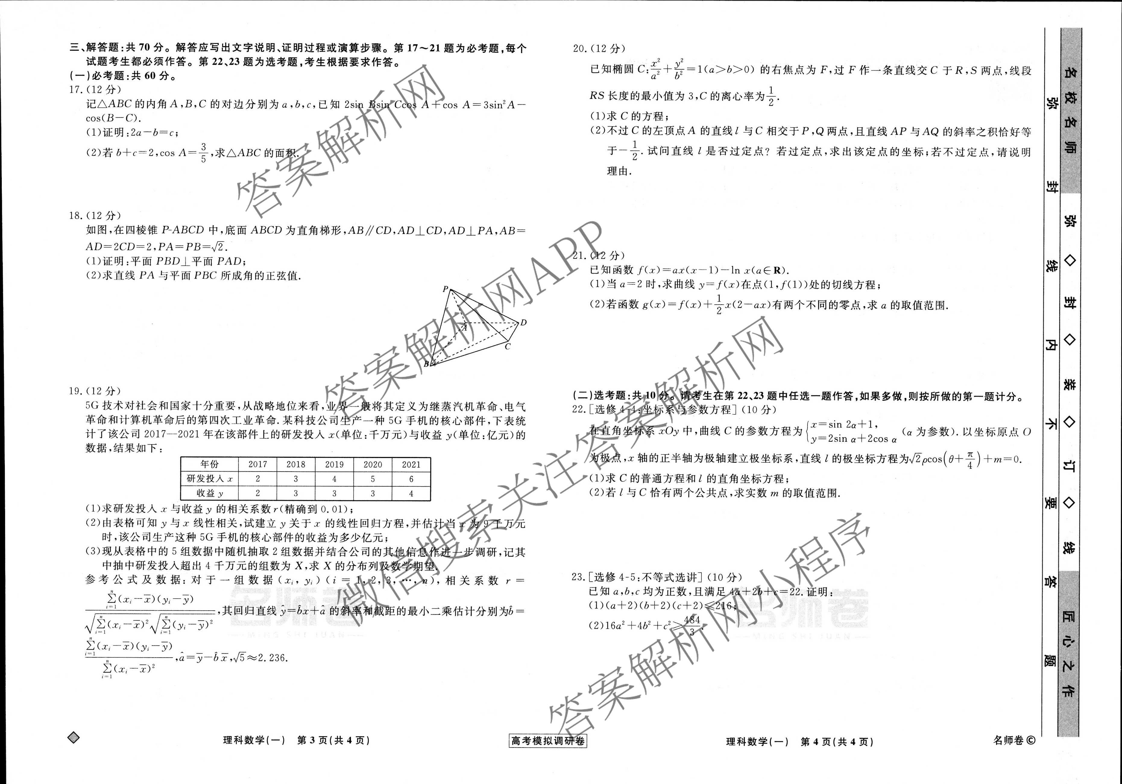 - 2022-2023(高三)[衡水名师卷]高考模拟调研卷 理数(不带◇)(一)1答案