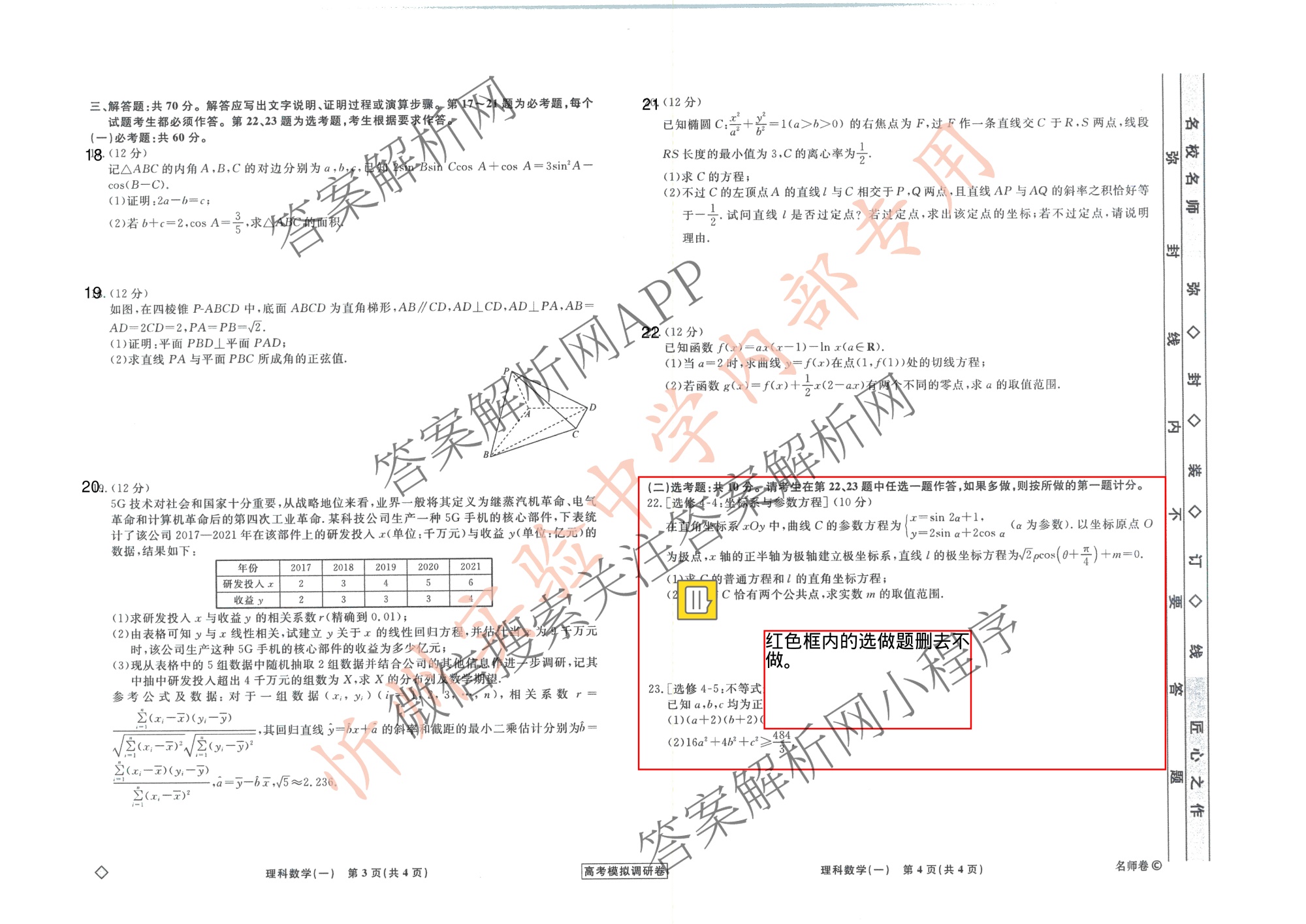- 2022-2023[衡水名师卷]高考模拟调研卷 理数(※)(一)1答案
