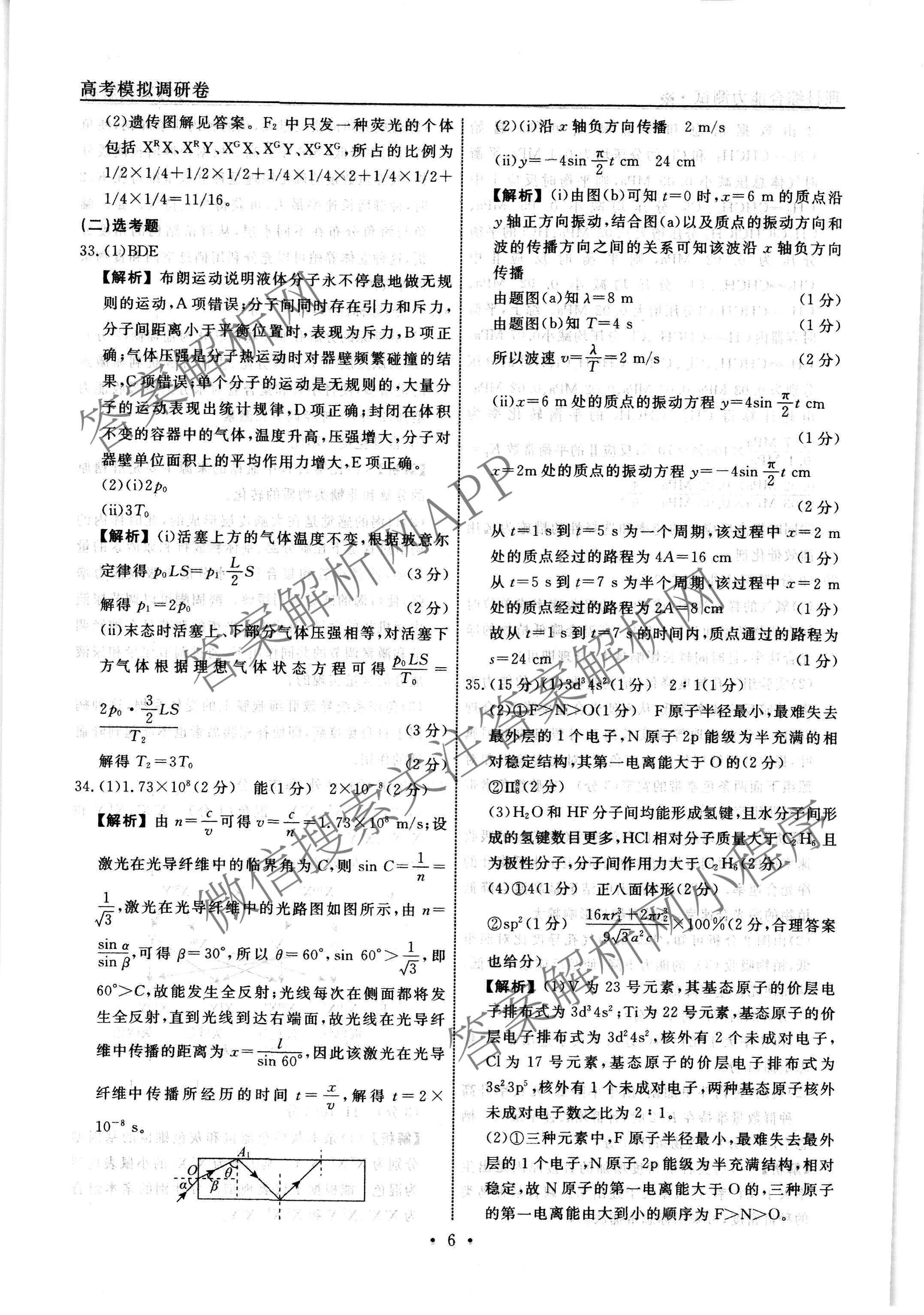 - 2022-2023[高三](衡水名师卷)高考模拟调研卷 理综(※)(一)1答案