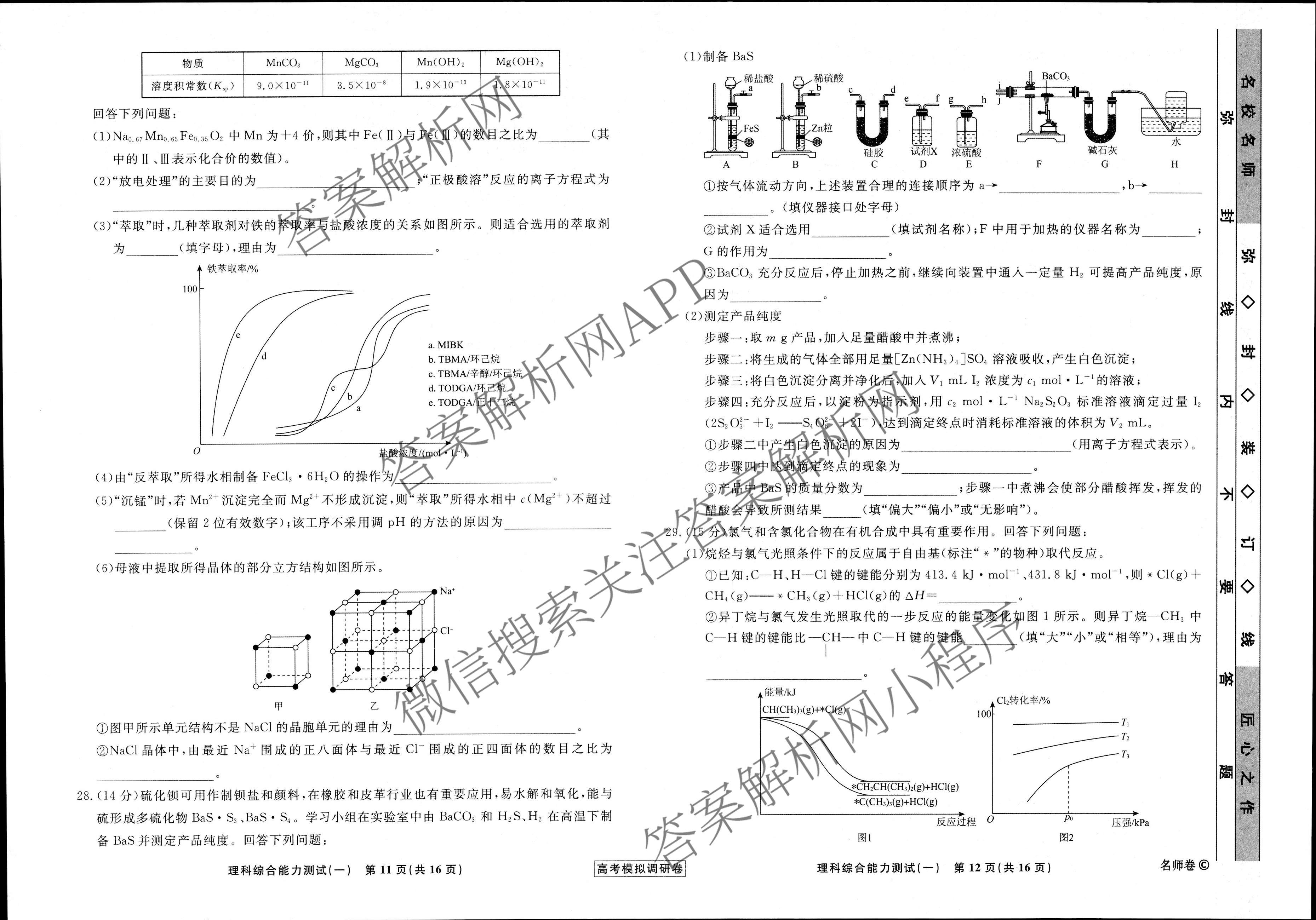 - [高三][衡水名师卷]·湖北省2023年高考模拟调研卷 化学(一)1答案