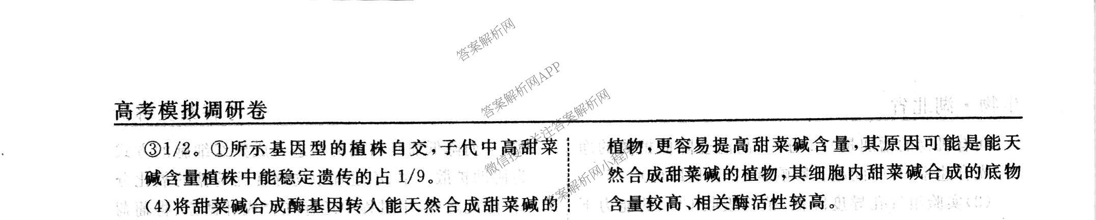 - [衡水名师卷]河北省2023年高考模拟调研卷 生物(一)1答案