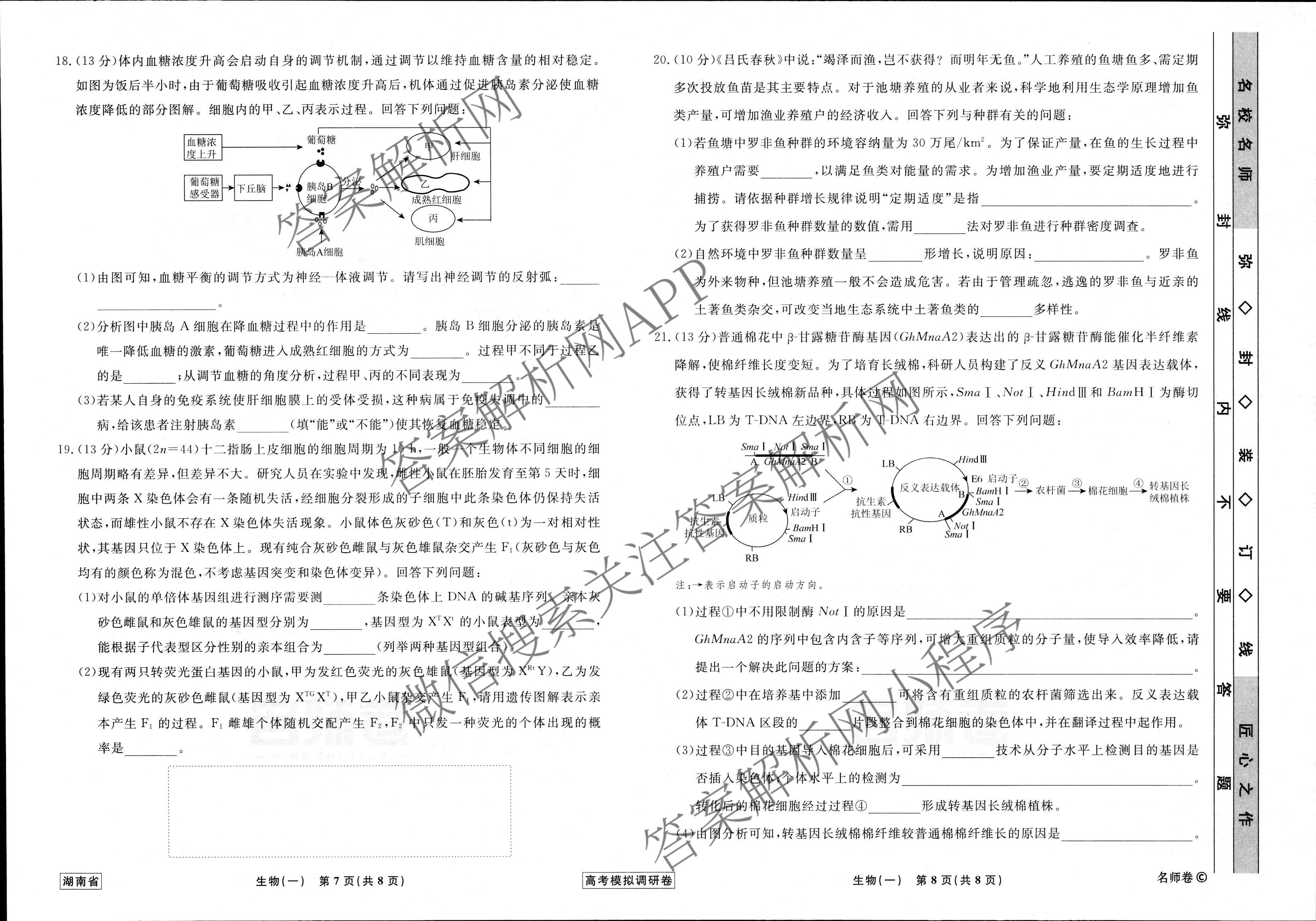 - [高三][衡水名师卷]·湖南省2023年高考模拟调研卷 生物(一)1试题
