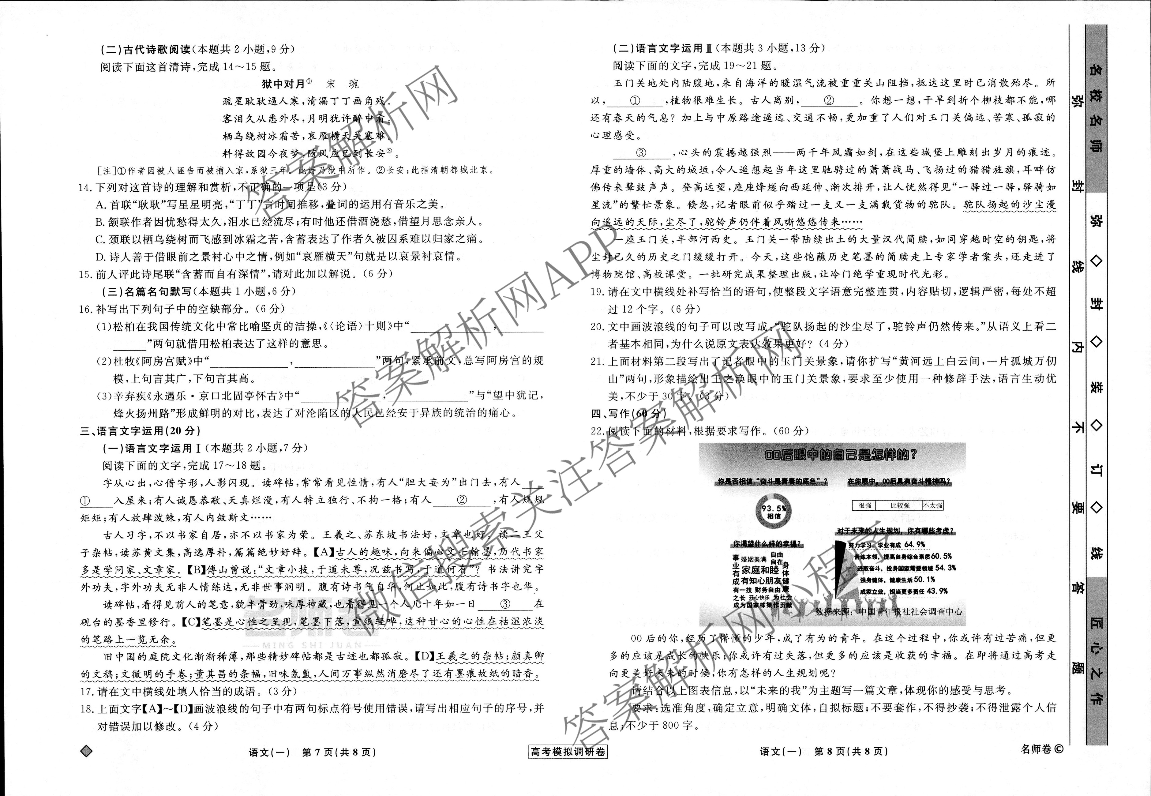 衡水名师卷·2022-2023高考模拟调研卷 语文(实心◇)(一)1试题,目前分科卷答案网已经汇总了衡水名师卷·2022-2023高考模拟调研卷 语文(实心◇)(一)1试题的各科答案和试卷,获取更多衡水名师卷答案解析,请在关注本站。