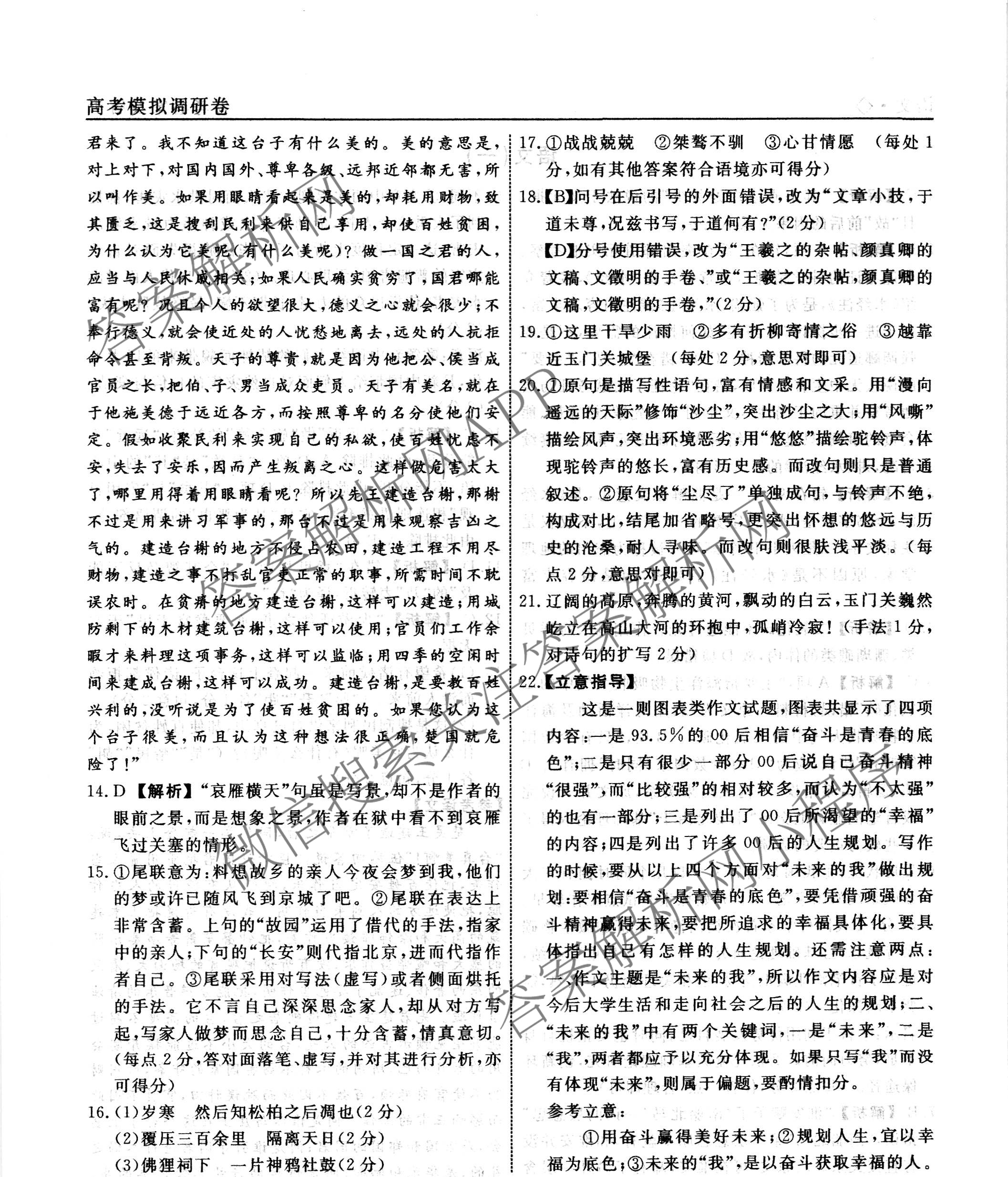 - [衡水名师卷]·2022~2023高考模拟调研卷 语文(※)(一)1答案