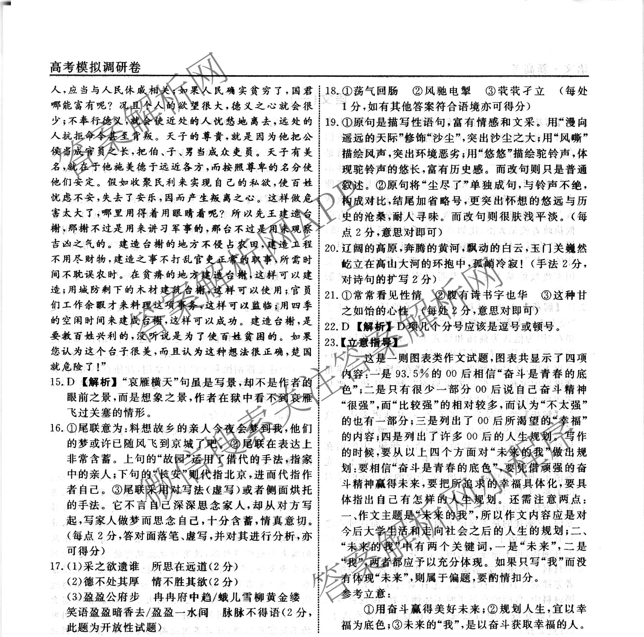 - [衡水名师卷]·2022~2023高考模拟调研卷 语文(※)(一)1答案