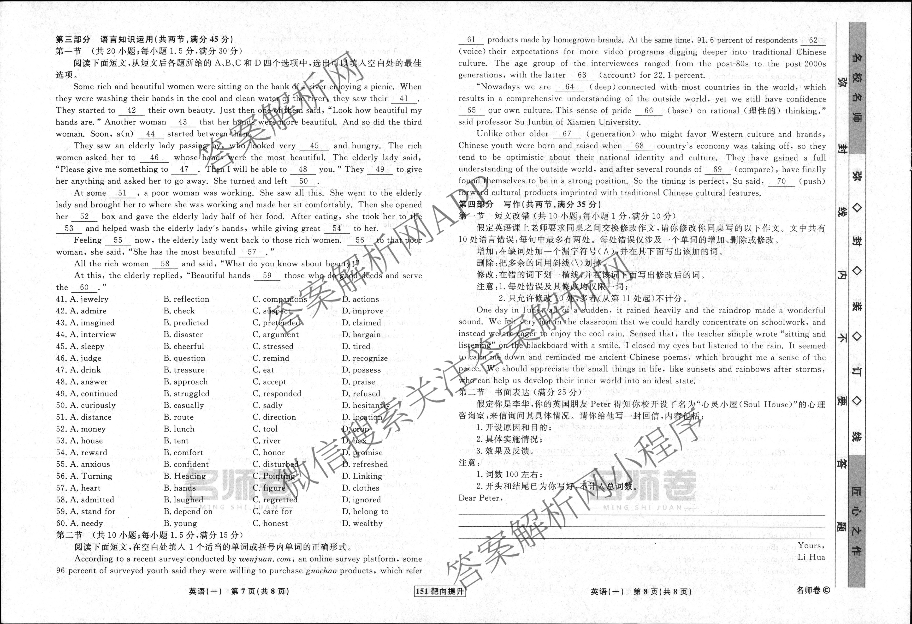 - 2022-2023[高三][衡水名师卷]·学年度分科检测提分卷·151靶向提升(老高考)英语(一)1试题