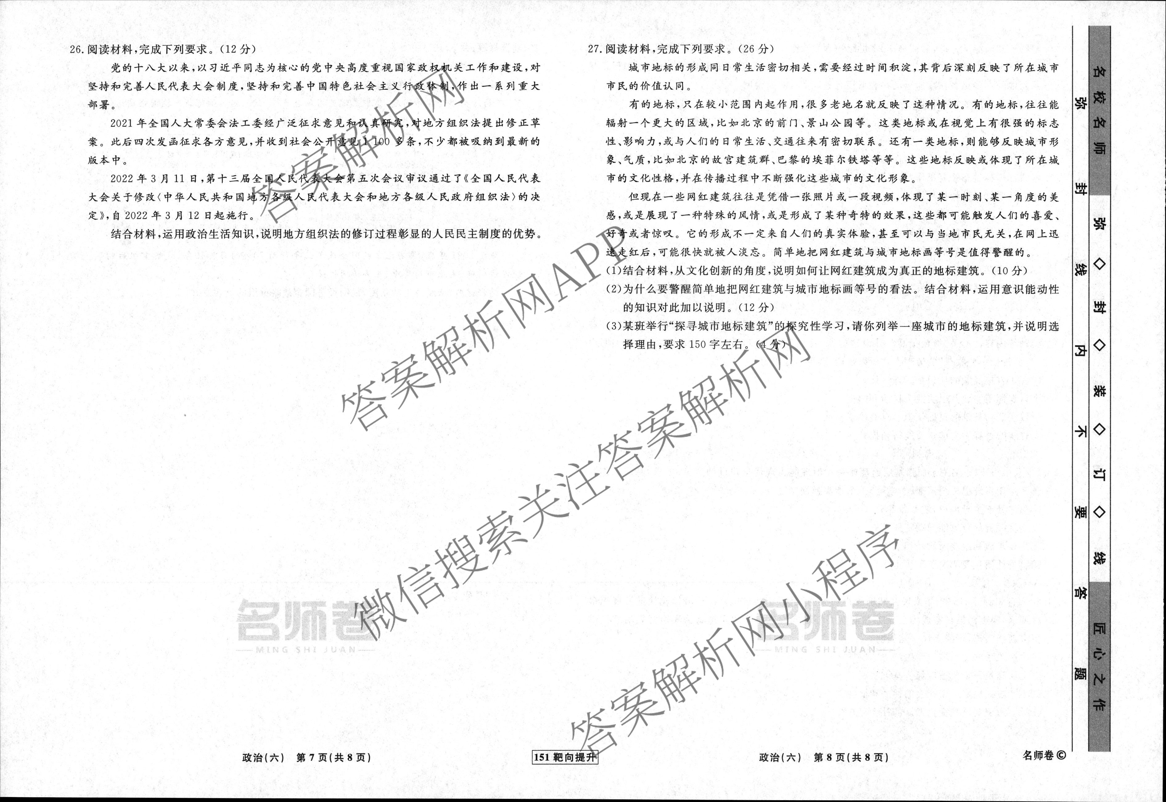 - 2022~2023[高三]衡水名师卷·学年度分科检测提分卷·151靶向提升(新教材)政治(六)6答案