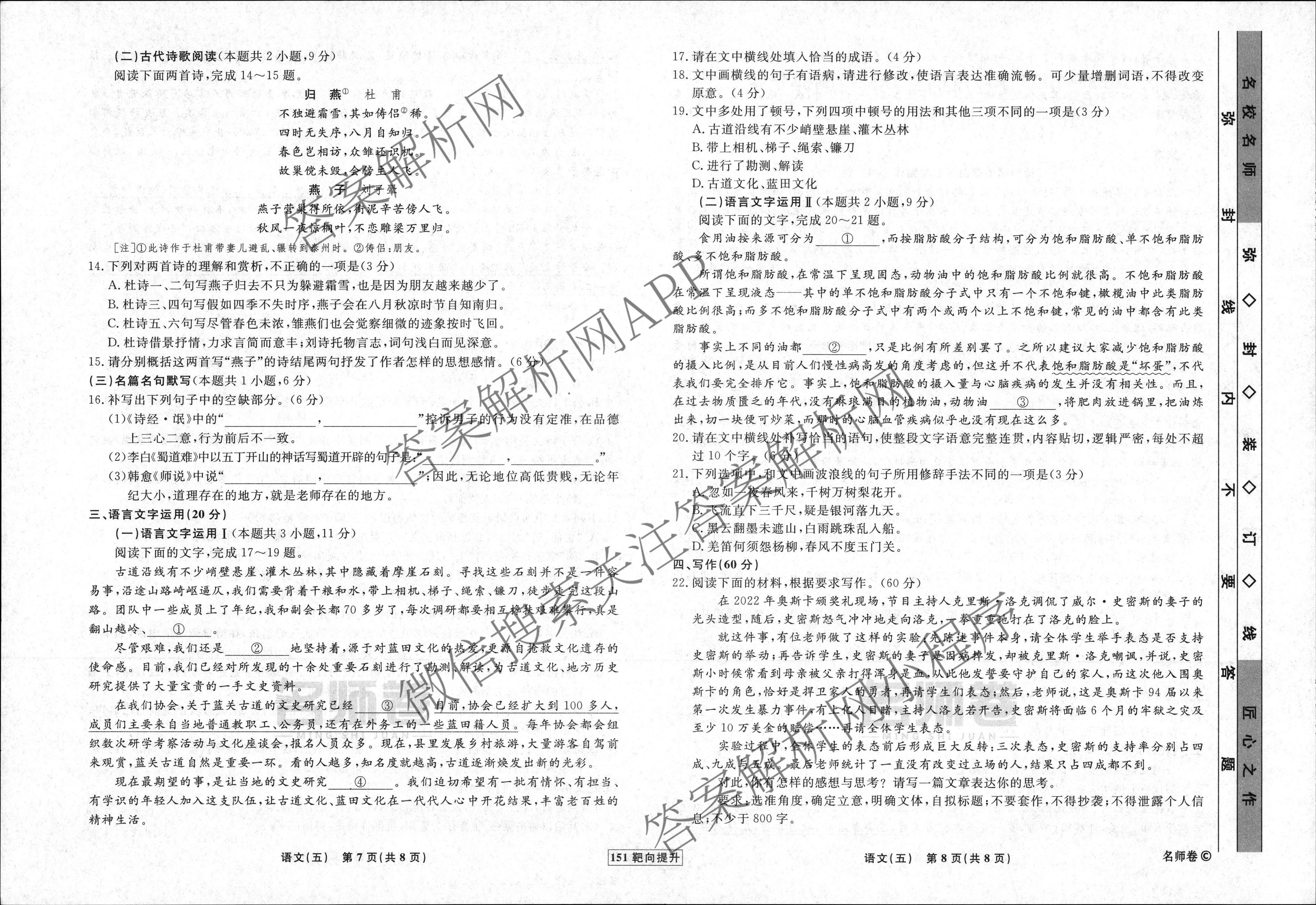 (高三)(衡水名师卷)2022~2023学年度分科检测提分卷151靶向提升(老高考)语文(五)5试题