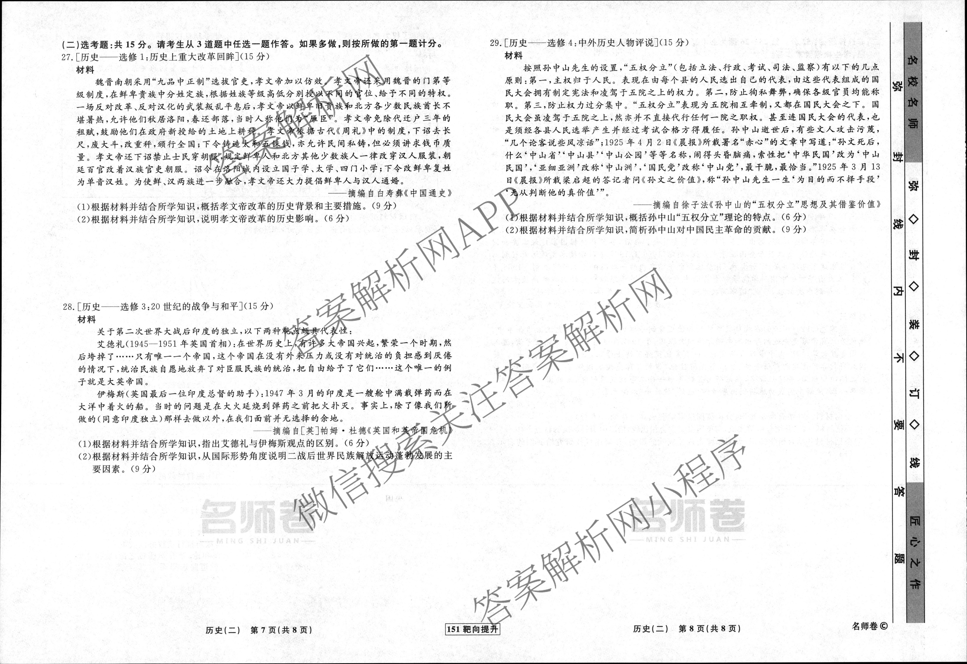 - 2022~2023高三(衡水名师卷)·学年度分科检测提分卷·151靶向提升 历史(河北)(二)2试题