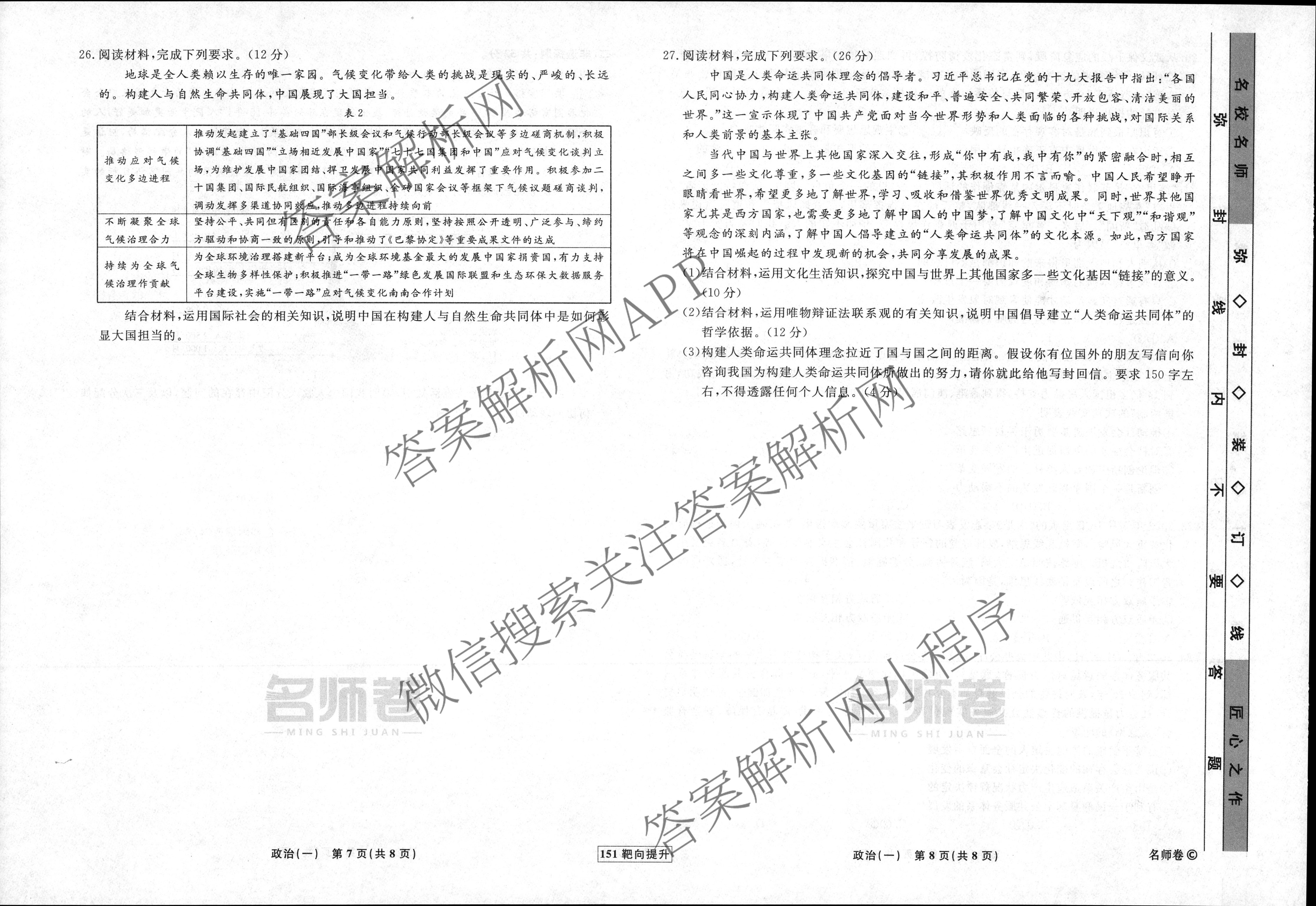 - 2022-2023[高三]衡水名师卷学年度分科检测提分卷151靶向提升 政治(河北)(一)1答案