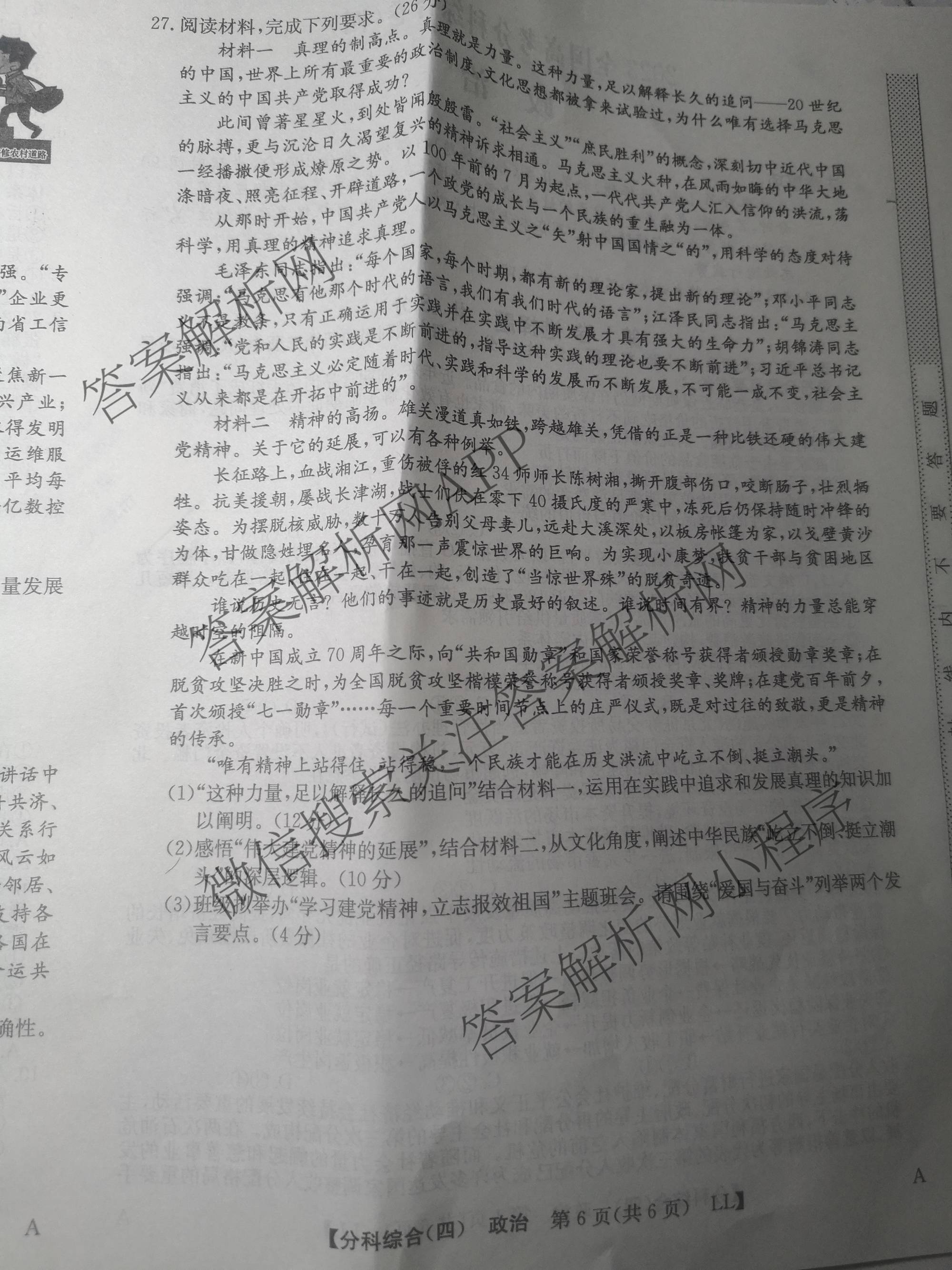 2023全国高考分科综合卷 政治 LLA(四)4试题,目前分科卷答案网已经汇总了2023全国高考分科综合卷 政治 LLA(四)4试题的各科答案和试卷,获取更多全国高考分科综合卷答案解析,请在关注本站。
