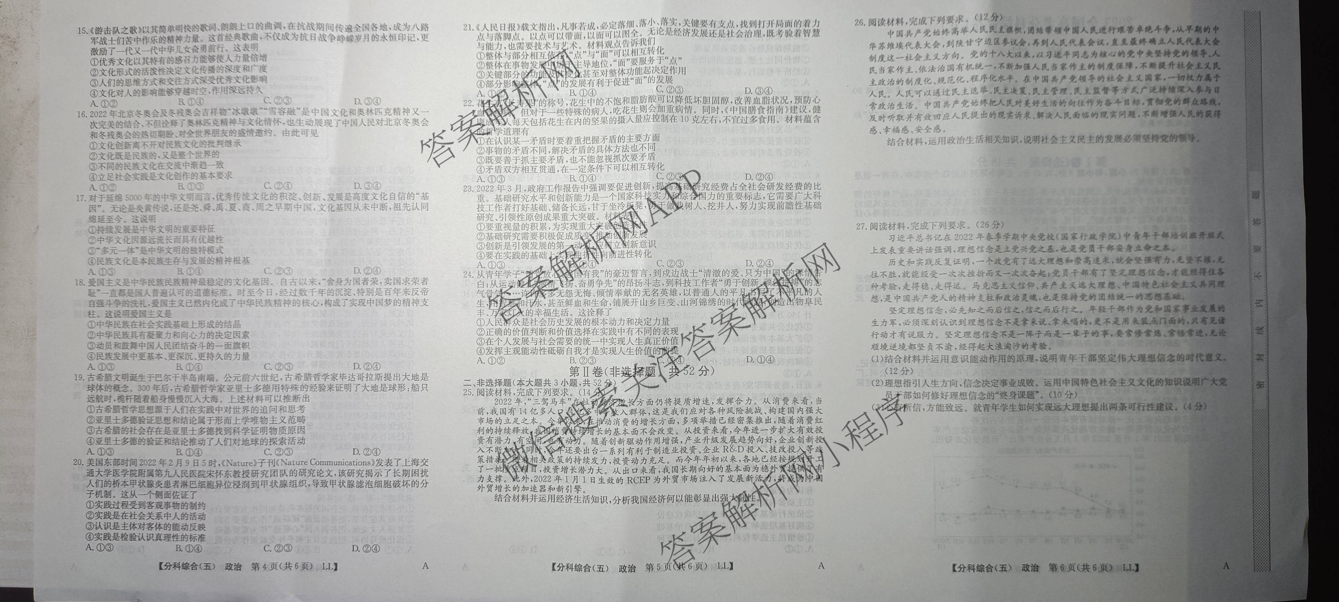 - 2023(全国高考分科综合卷) 政治 LL B(五)5答案