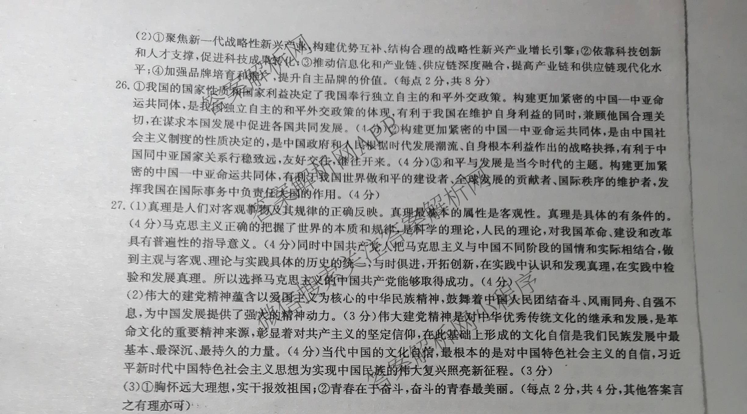- 2023(全国高考分科综合卷) 政治 LL B(四)4答案