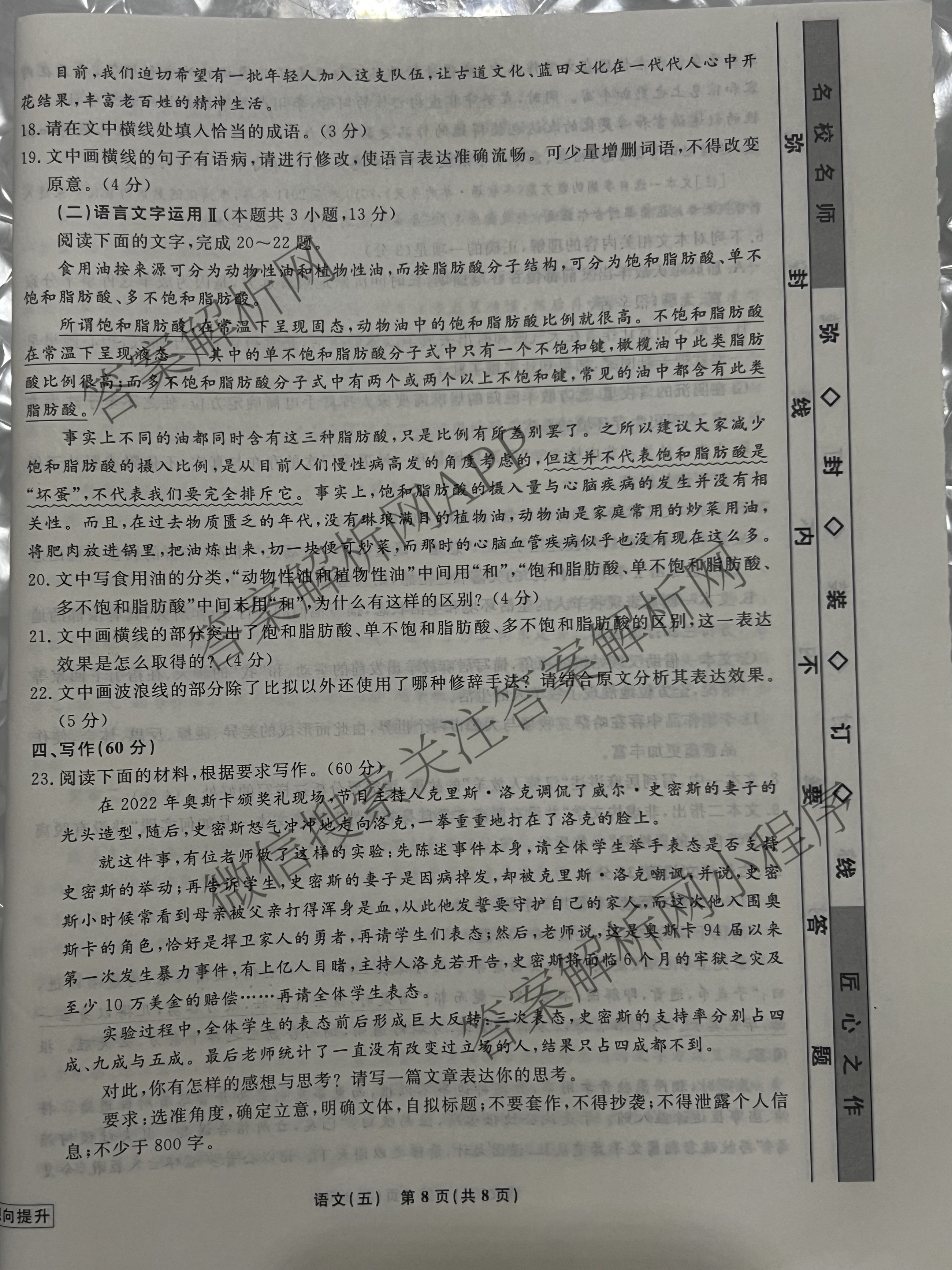 2022~2023高三[衡水名师卷]学年度分科检测提分卷151靶向提升(新教材)语文(五)5试题