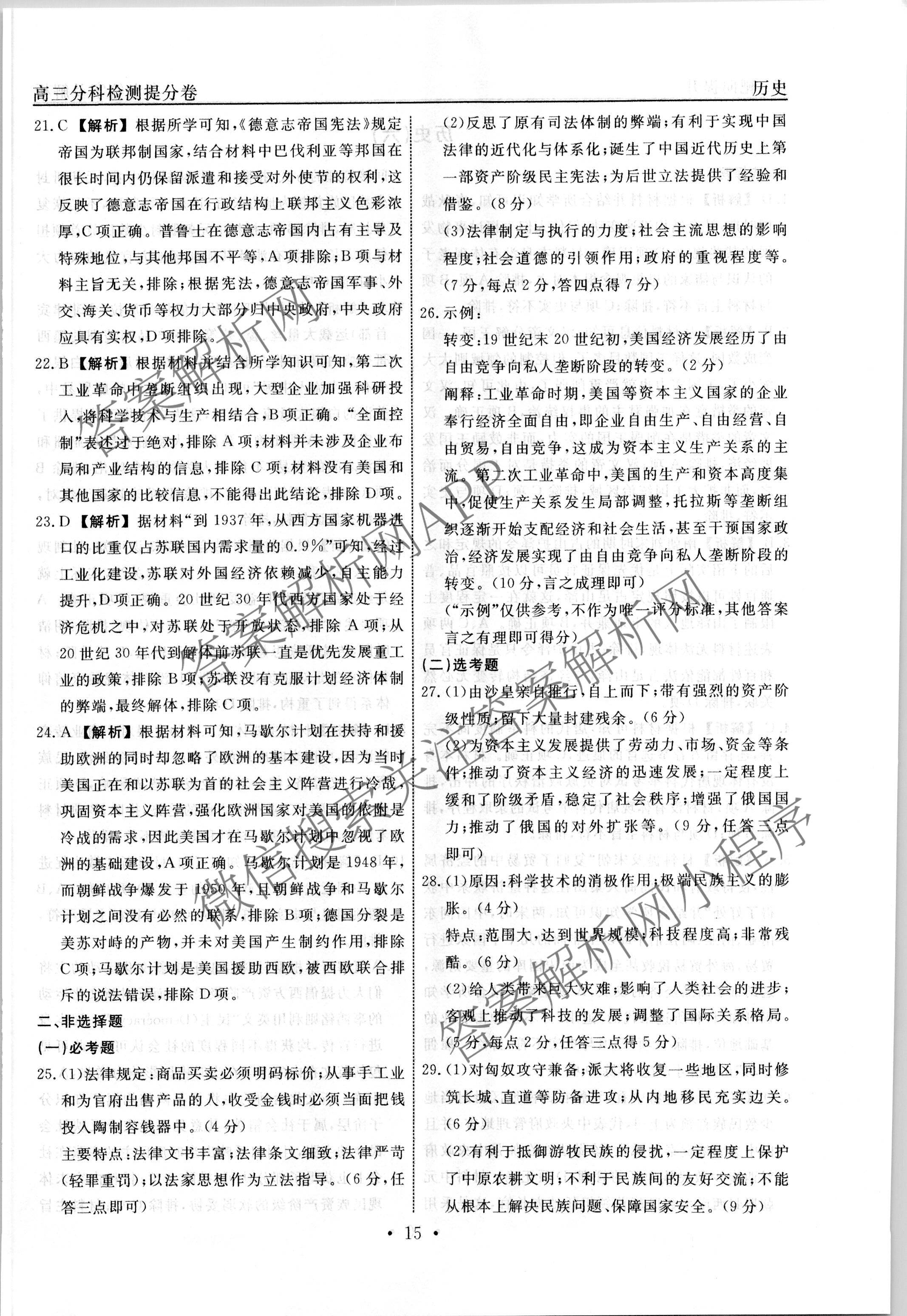- 高三[衡水名师卷]2022~2023学年度分科检测提分卷151靶向提升(老高考)历史(五)5答案