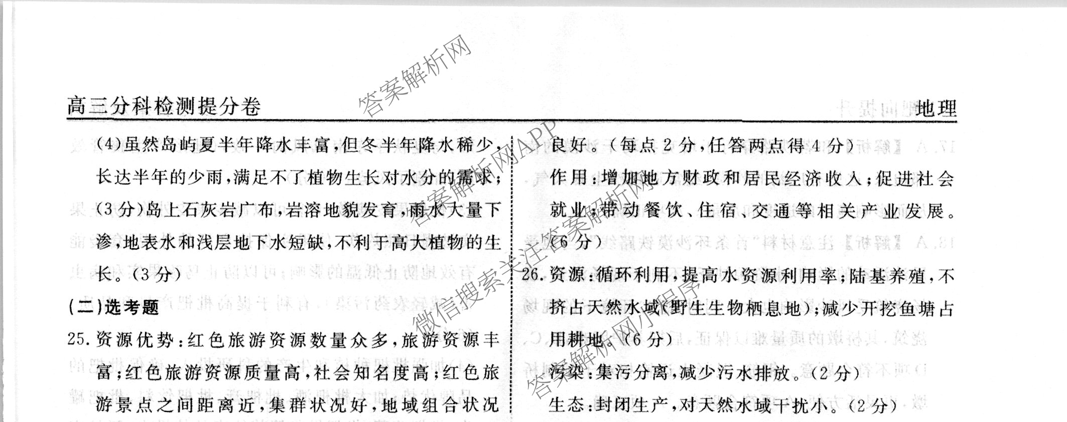 - 2022~2023(衡水名师卷)学年度高三分科检测提分卷151靶向提升(老高考)地理(三)3答案