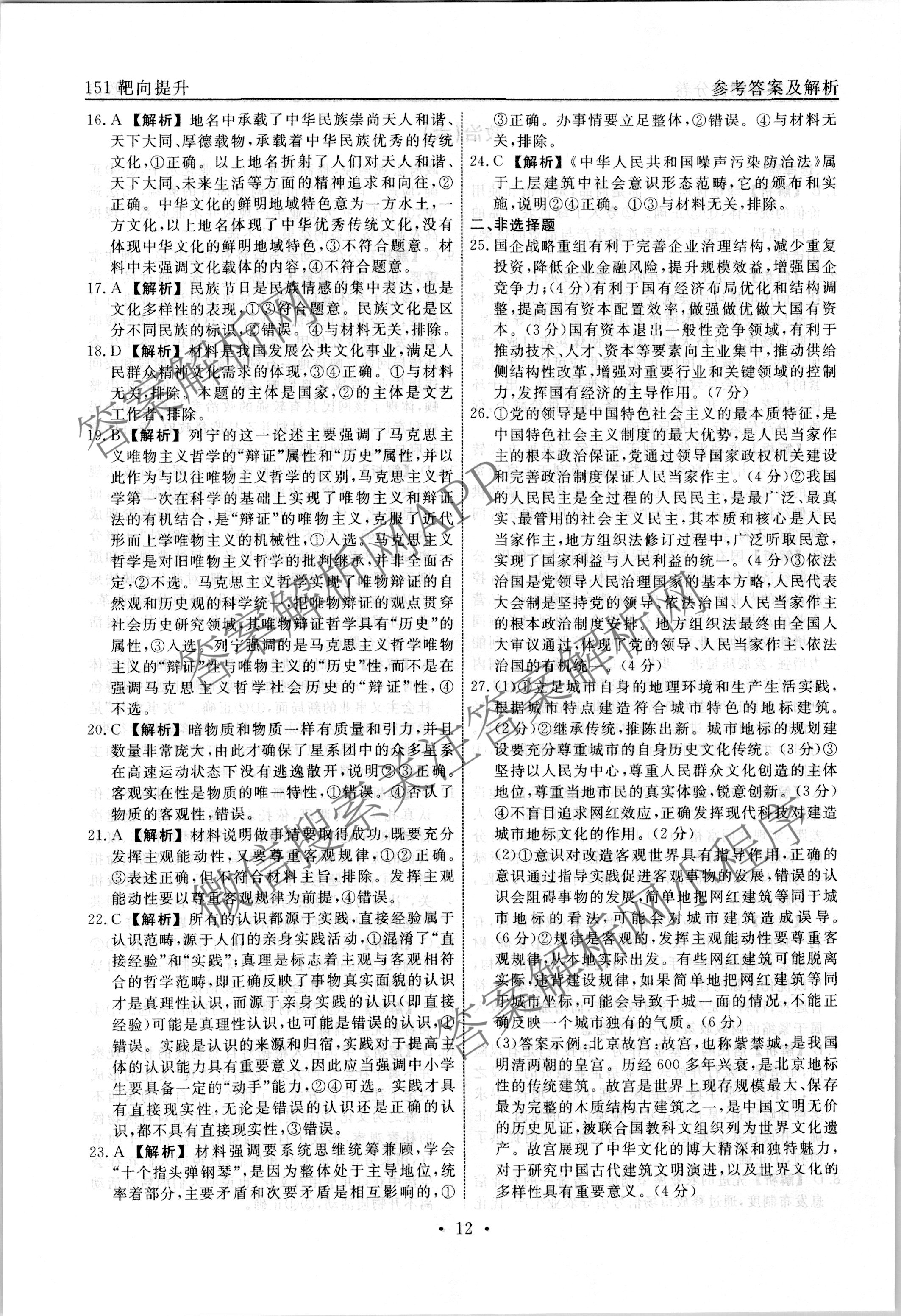 - 2022~2023[高三]衡水名师卷·学年度分科检测提分卷·151靶向提升(新教材)政治(六)6答案