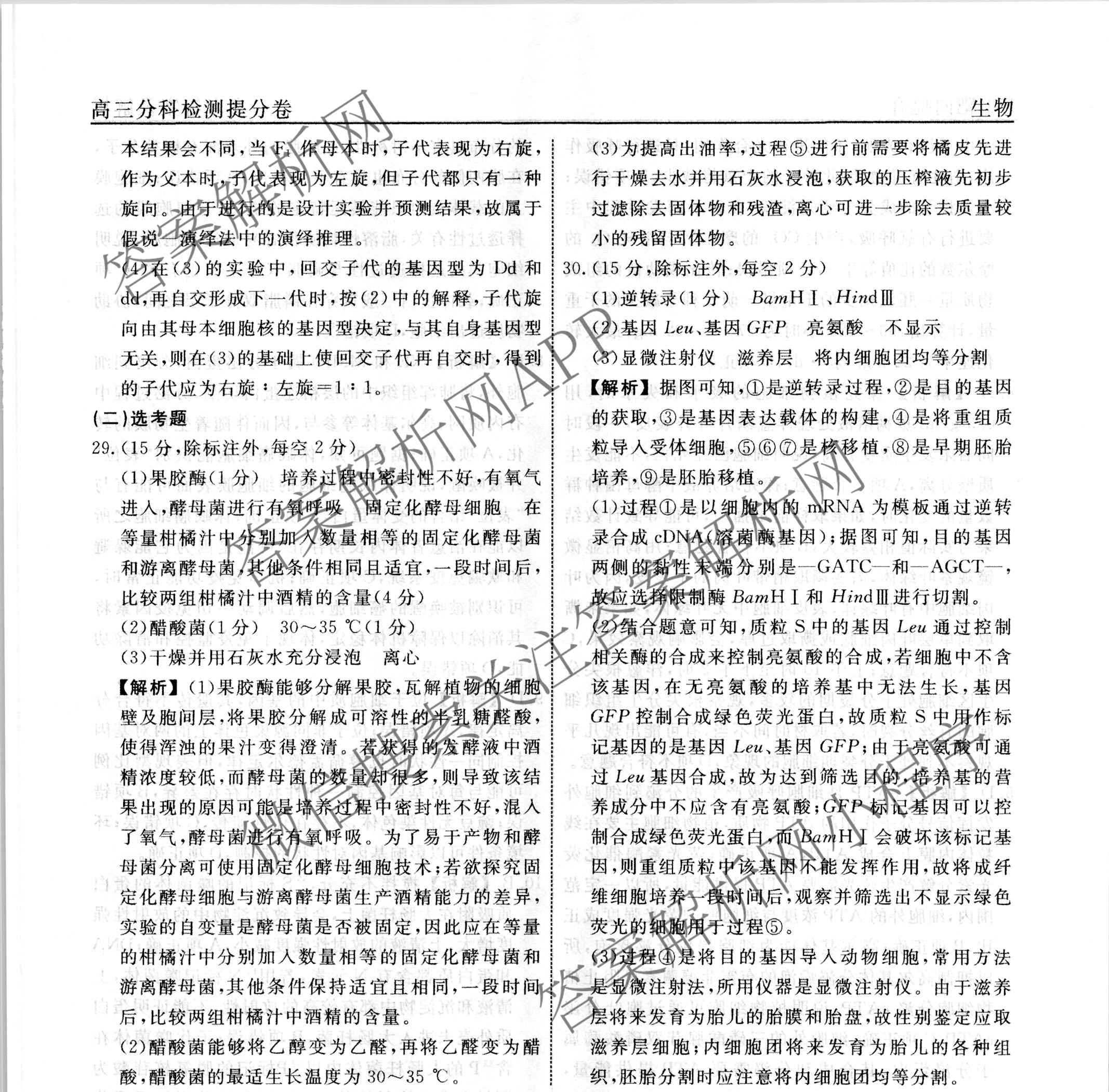 - 2022-2023(高三)衡水名师卷·学年度分科检测提分卷·151靶向提升(老高考)生物(五)5答案