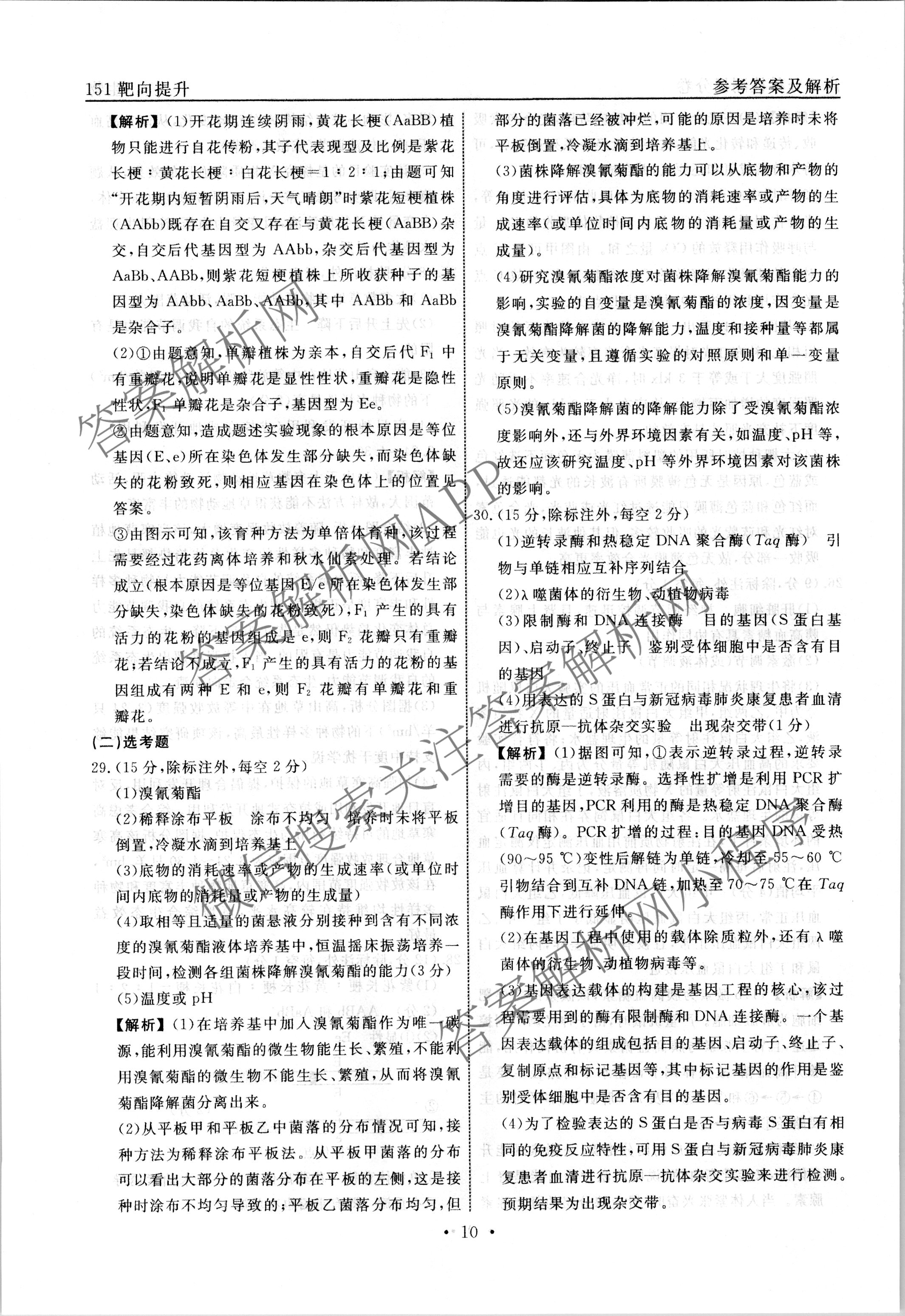 - 高三[衡水名师卷]2022~2023学年度分科检测提分卷151靶向提升 生物(河北)(二)2答案