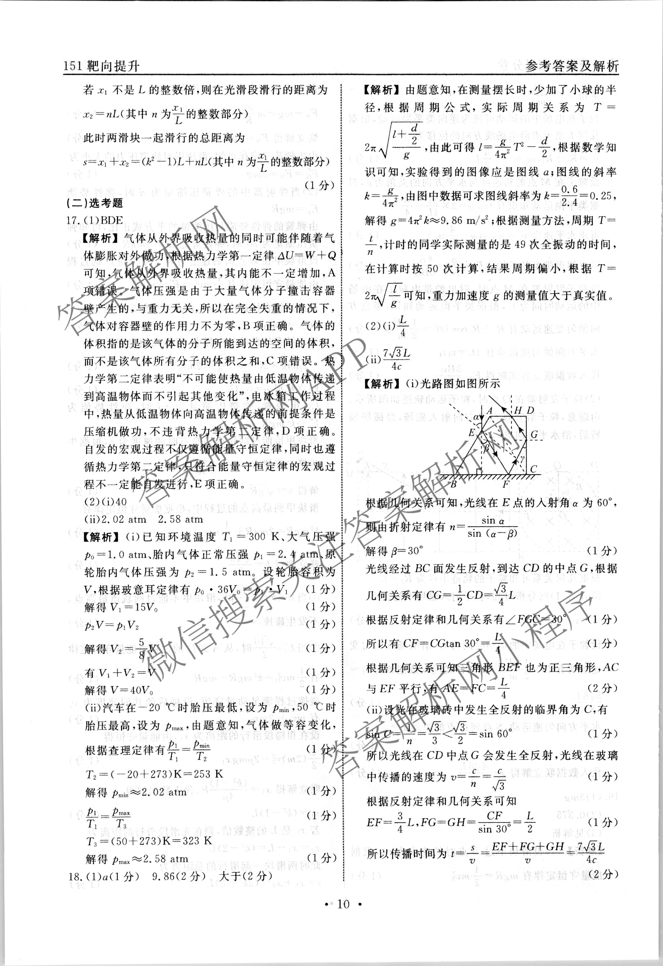 - [高三][衡水名师卷]·2022~2023学年度分科检测提分卷·151靶向提升 物理(河北)(二)2答案