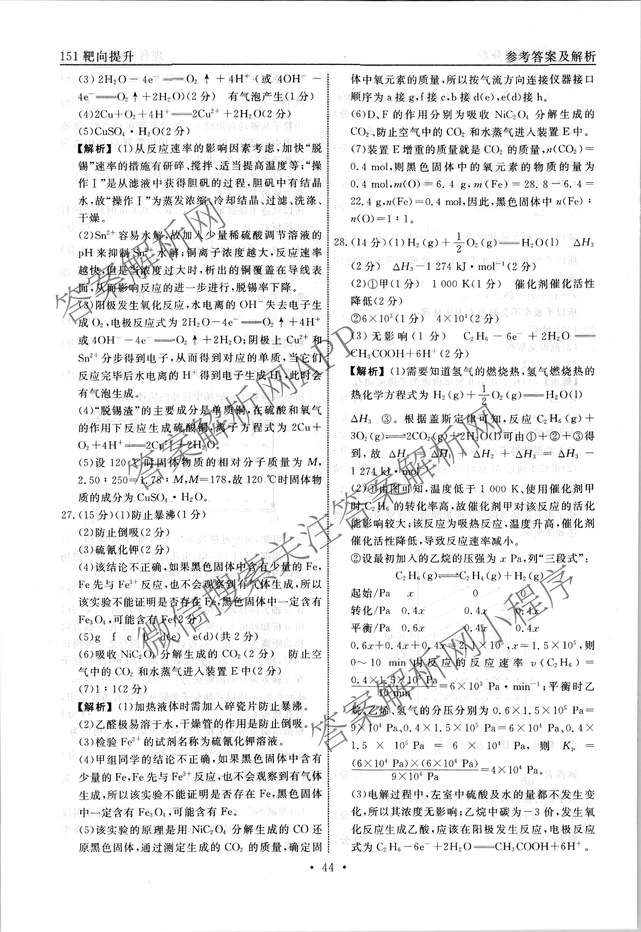 - 2022-2023[高三]衡水名师卷学年度分科检测提分卷151靶向提升 化学(河北)(五)5答案