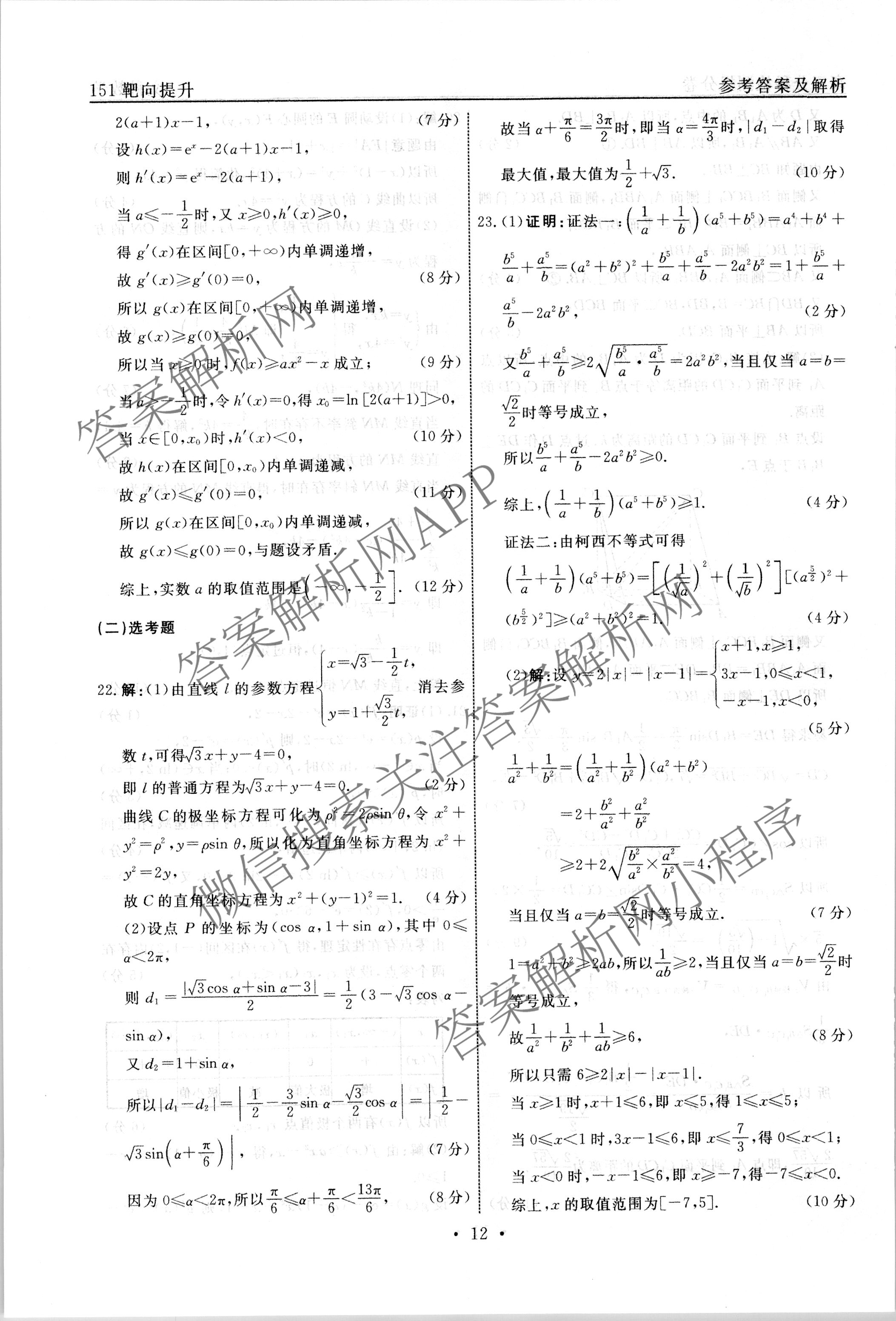 - (高三)[衡水名师卷]·2022-2023学年度分科检测提分卷·151靶向提升(老高考)文数(三)3答案