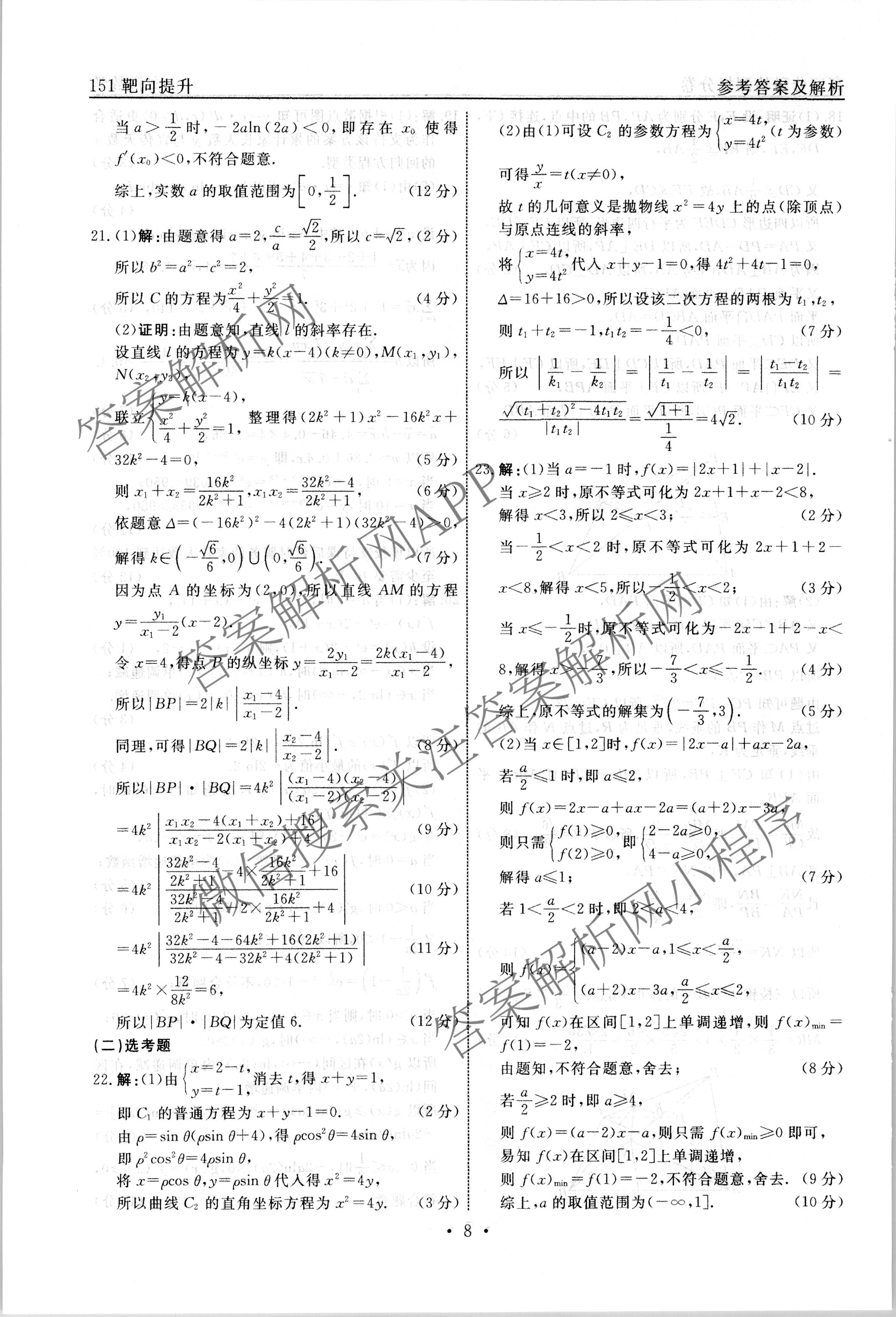 - 2022~2023[高三][衡水名师卷]·学年度分科检测提分卷·151靶向提升(老高考)文数(二)2答案