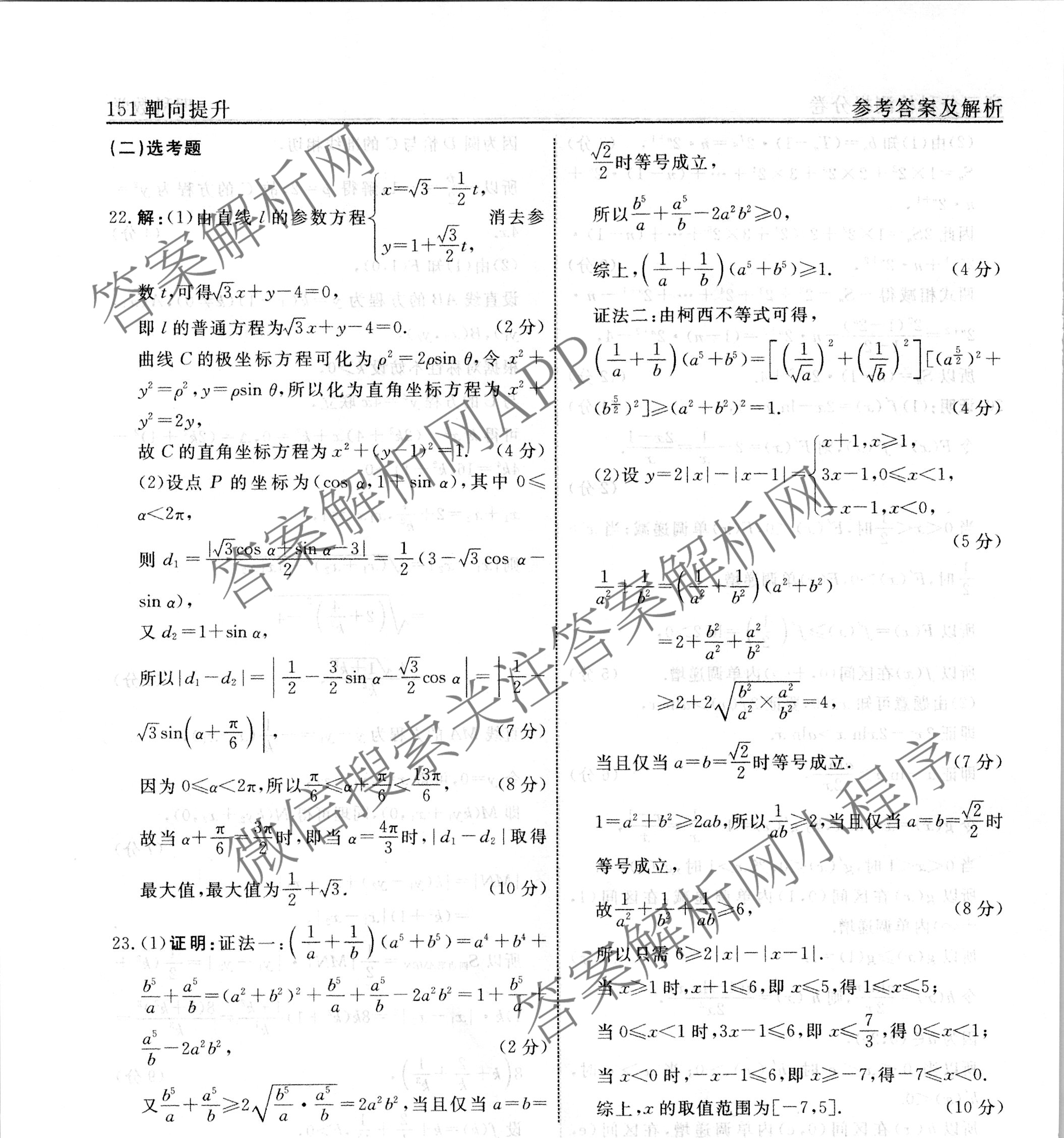 - (高三)[衡水名师卷]·2022-2023学年度分科检测提分卷·151靶向提升(老高考)文数(三)3答案