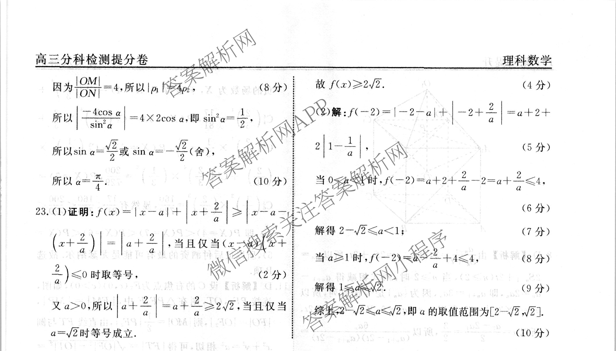 - (高三)[衡水名师卷]·2022~2023学年度分科检测提分卷·151靶向提升(老高考)理数(一)1答案
