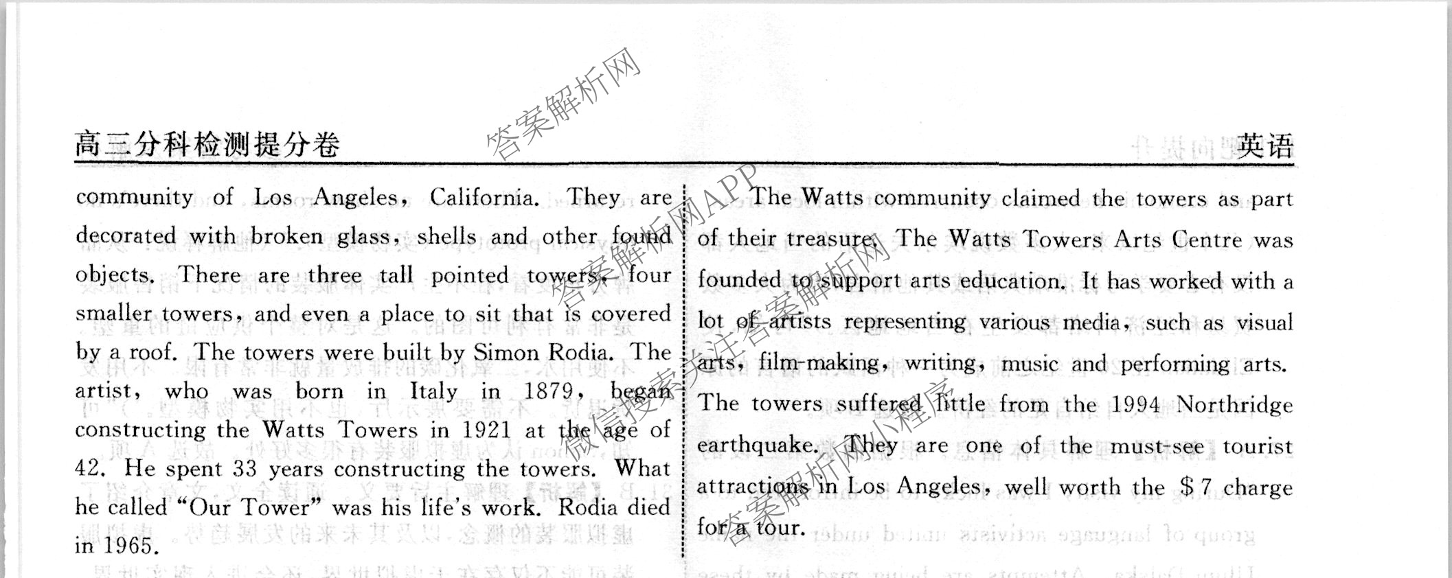 - [高三](衡水名师卷)2022-2023学年度分科检测提分卷151靶向提升(新教材)英语(一)1答案